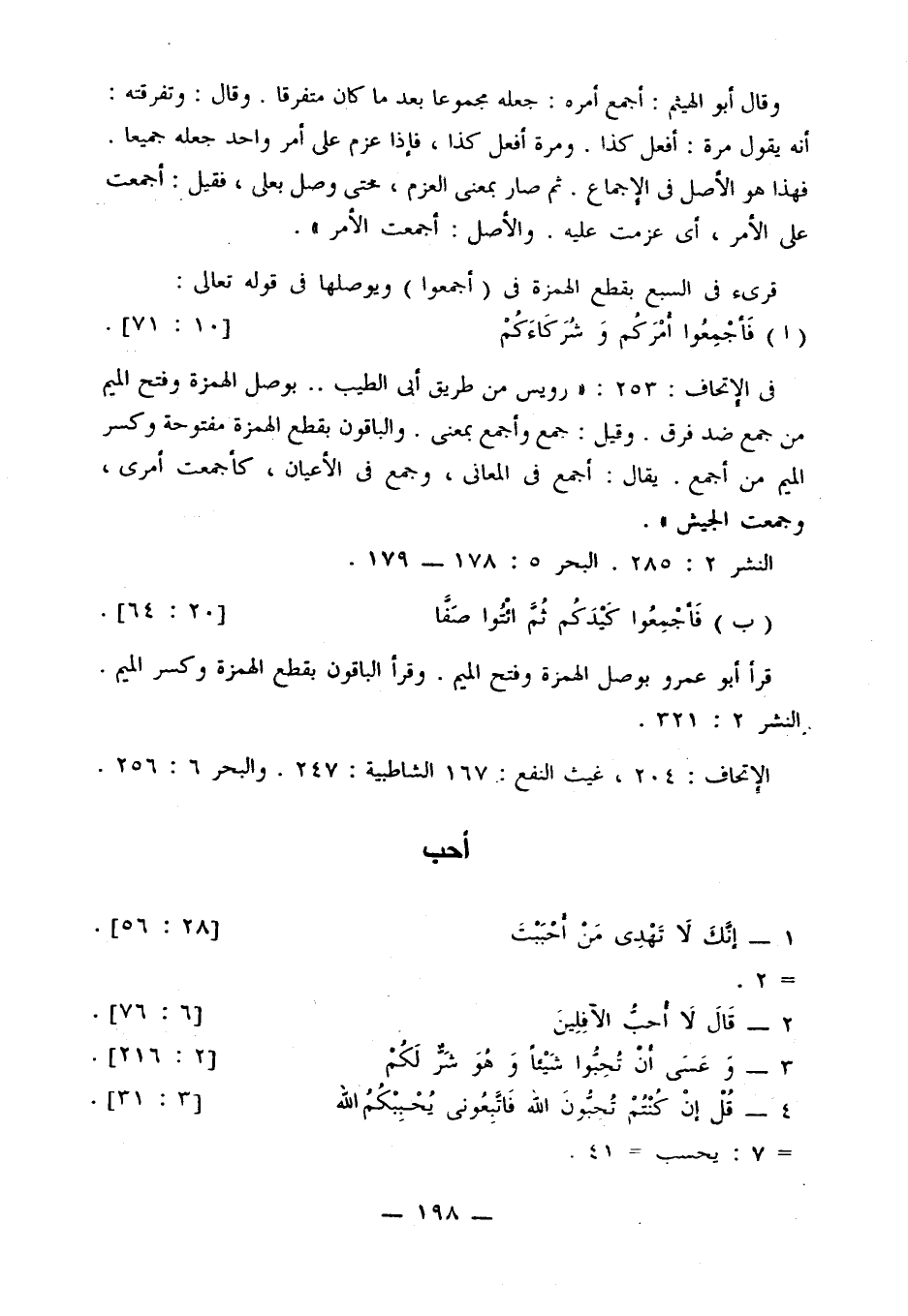 في الإتحاف: 253: «رويس من طريق أبي الطيب ... بوصل الهمزة وفتح الميم من جمع ضد فرق. وقيل: جمع وأجمع بمعنى. والباقون بقطع الهمزة مفتوحة وكسر الميم من أجمع. يقال: أجمع في المعاني، وجمع في الأعيان، كأجمعت أمري، وجمعت الجيش».