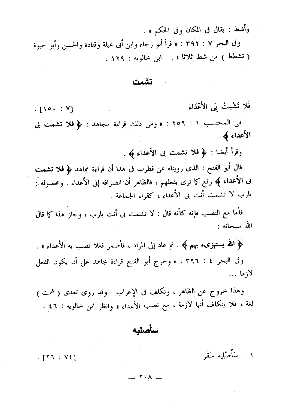 في المحتسب 1: 259: «ومن ذلك قراءة مجاهد: {فلا تشمت بي الأعداء}.