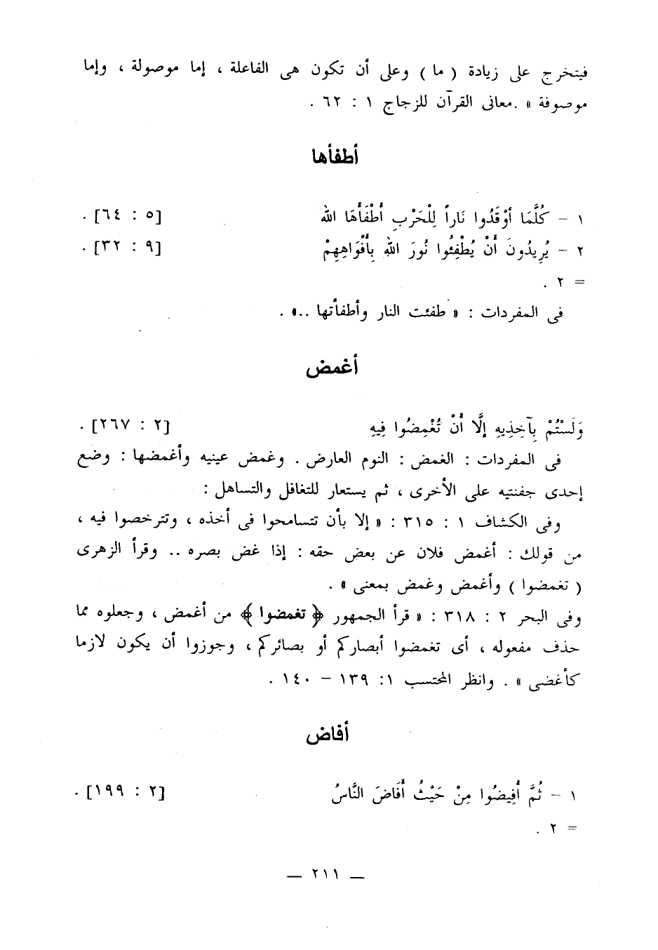 وفي الكشاف 1: 315: «إلا بأن تتسامحوا في أخذه، وتترخصوا فيه، من قولك: أغمض فلان عن بعض حقه: إذا غض بصره ... وقرأ الزهري (تغمضوا) وأغمض وغمض بمعنى».
