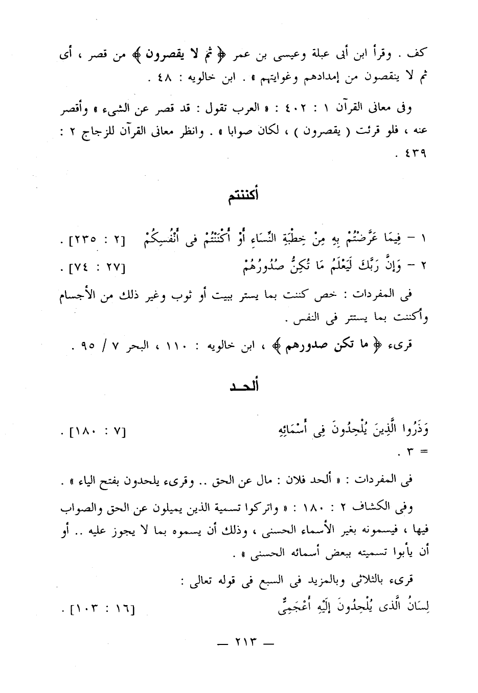 وفي معاني القرآن 1: 402: «العرب تقول: قد قصر عن الشيء» وأقصر عنه، فلو قرئت (يقصرون) لكان صوابا. وانظر معاني القرآن للزجاج 2: 439.