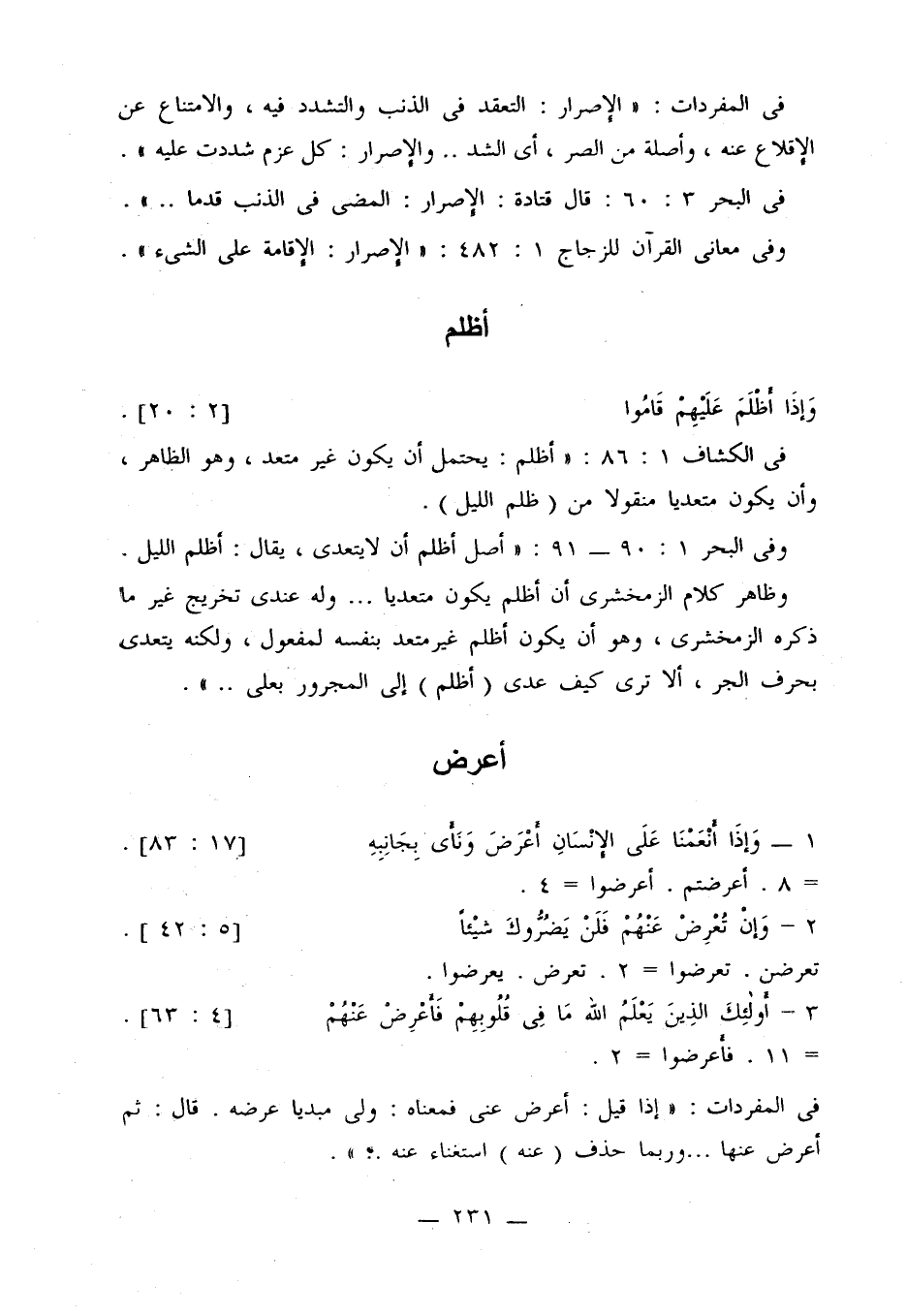 في المفردات: «إذا قيل: أعرض عني فمعناه: ولى مبديا عرضه. قال: ثم أعرض عنها ... وربما حذف (عنه) استغناء عنه ...».