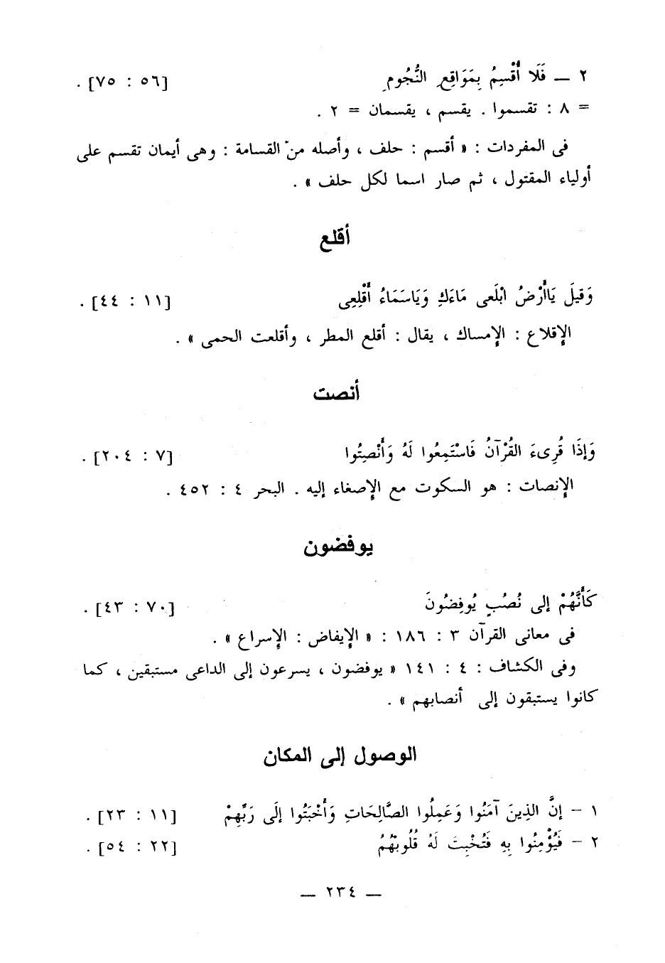 وفي الكشاف: 4: 141: «يوفضون، يسرعون إلى الداعي مستبقين، كما كانوا يستبقون إلى أنصابهم».