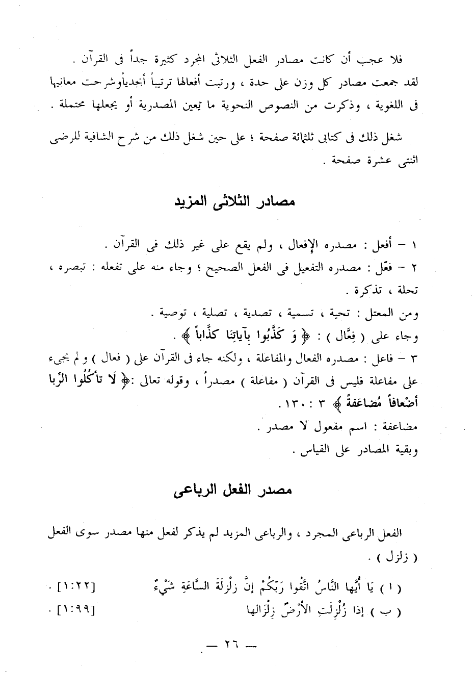 شغل ذلك في كتابي ثلثمائة صفحة؛ على حين شغل ذلك من شرح الشافية للرضى اثنتي عشرة صفحة.