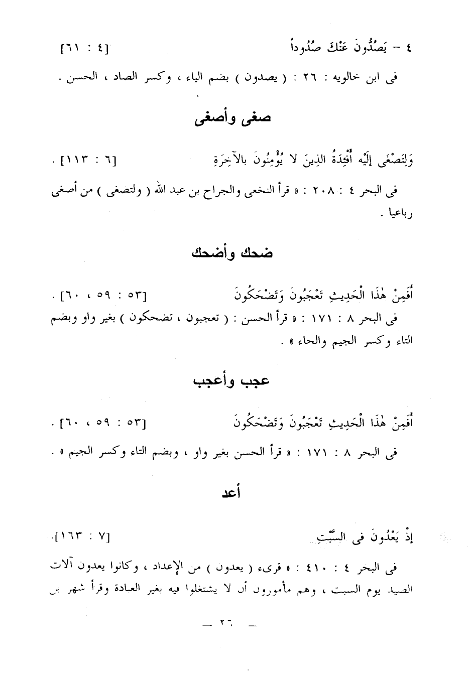 في البحر 4: 208: «قرأ النخعي والجراح بن عبد الله (ولتصغى) من أصغى رباعيًا».