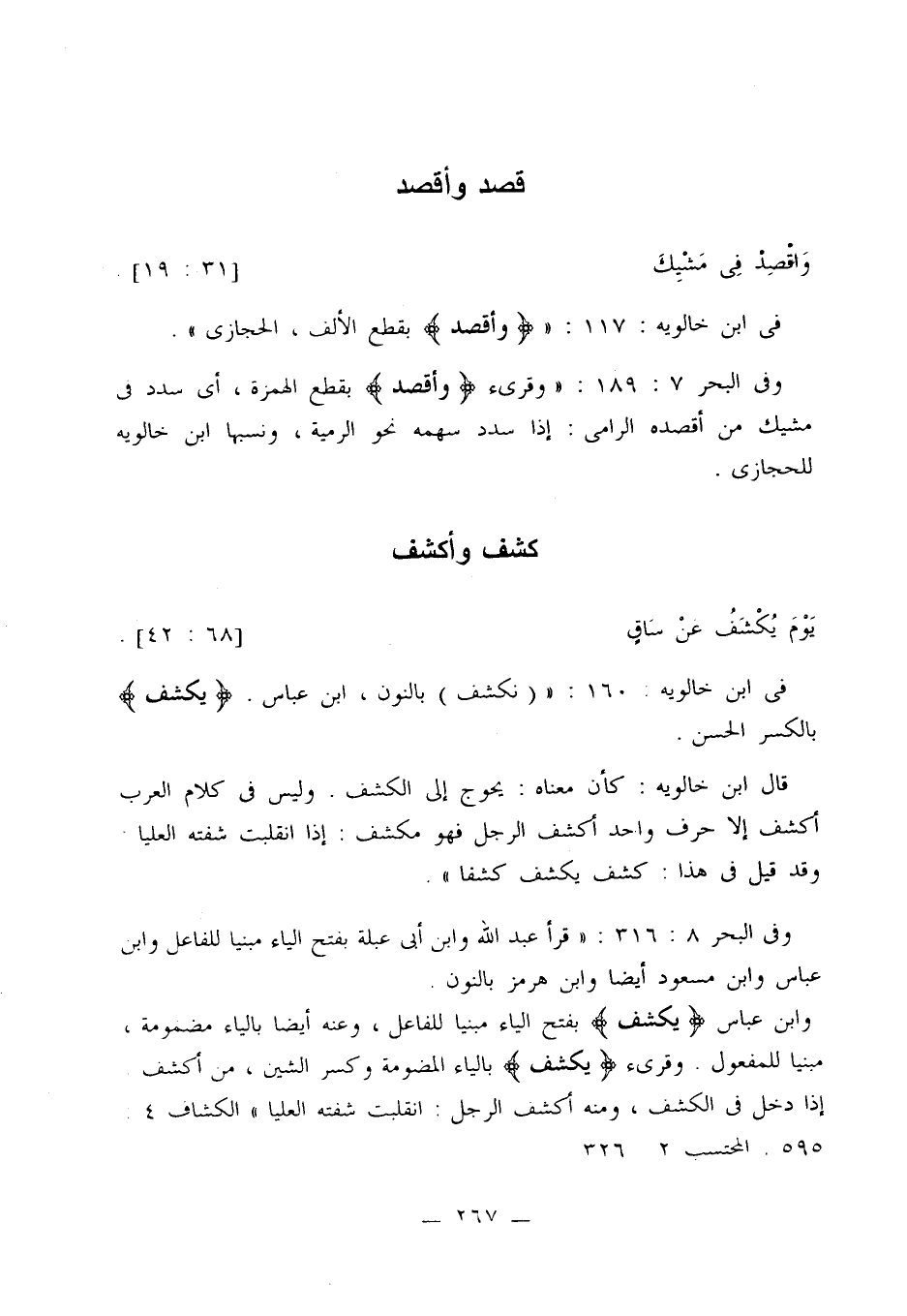 في ابن خالويه: 117: «{وأقصد} بقطع الألف، الحجازي».