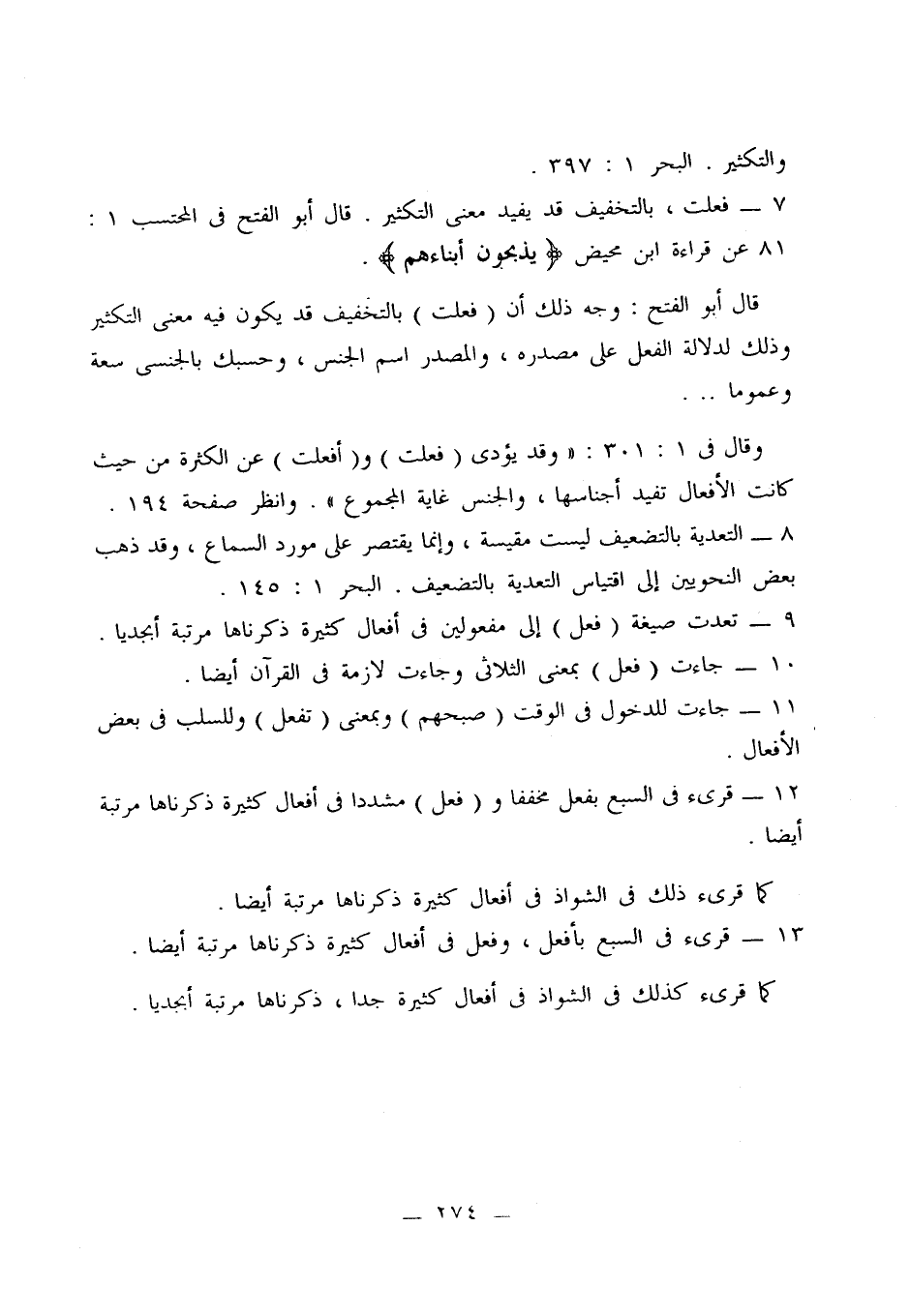 7 - فعلت، بالتخفيف قد يفيد معنى التكثير. قال أبو الفتح في المحتسب 1: 81 عن قراءة ابن محيض {يذبحون أبناءهم}.