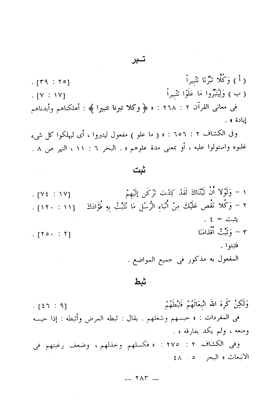 أ- وكلا تبرنا تتبيرا ... [25: 39].