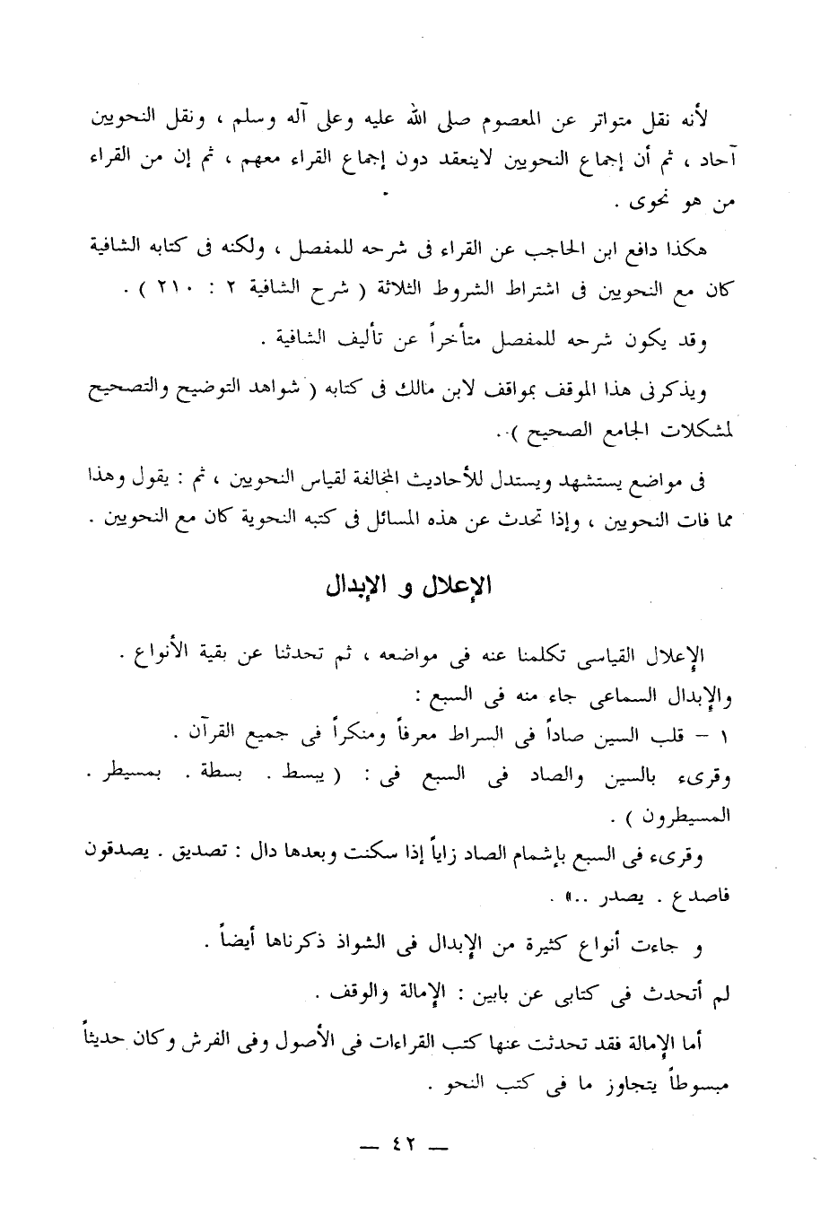 هكذا دافع ابن الحاجب عن القراء في شرحه للمفصل، ولكنه في كتابه الشافية كان مع النحويين في اشتراط الشروط الثلاثة (شرح الشافية 2: 210).