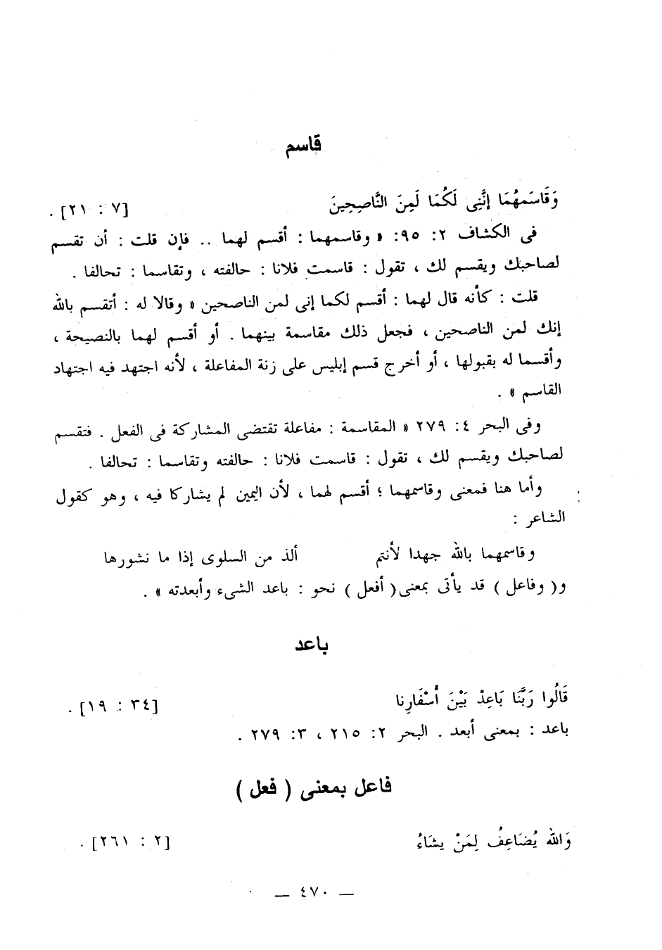 باعد: بمعنى أبعد. البحر 2: 215، 3: 279.