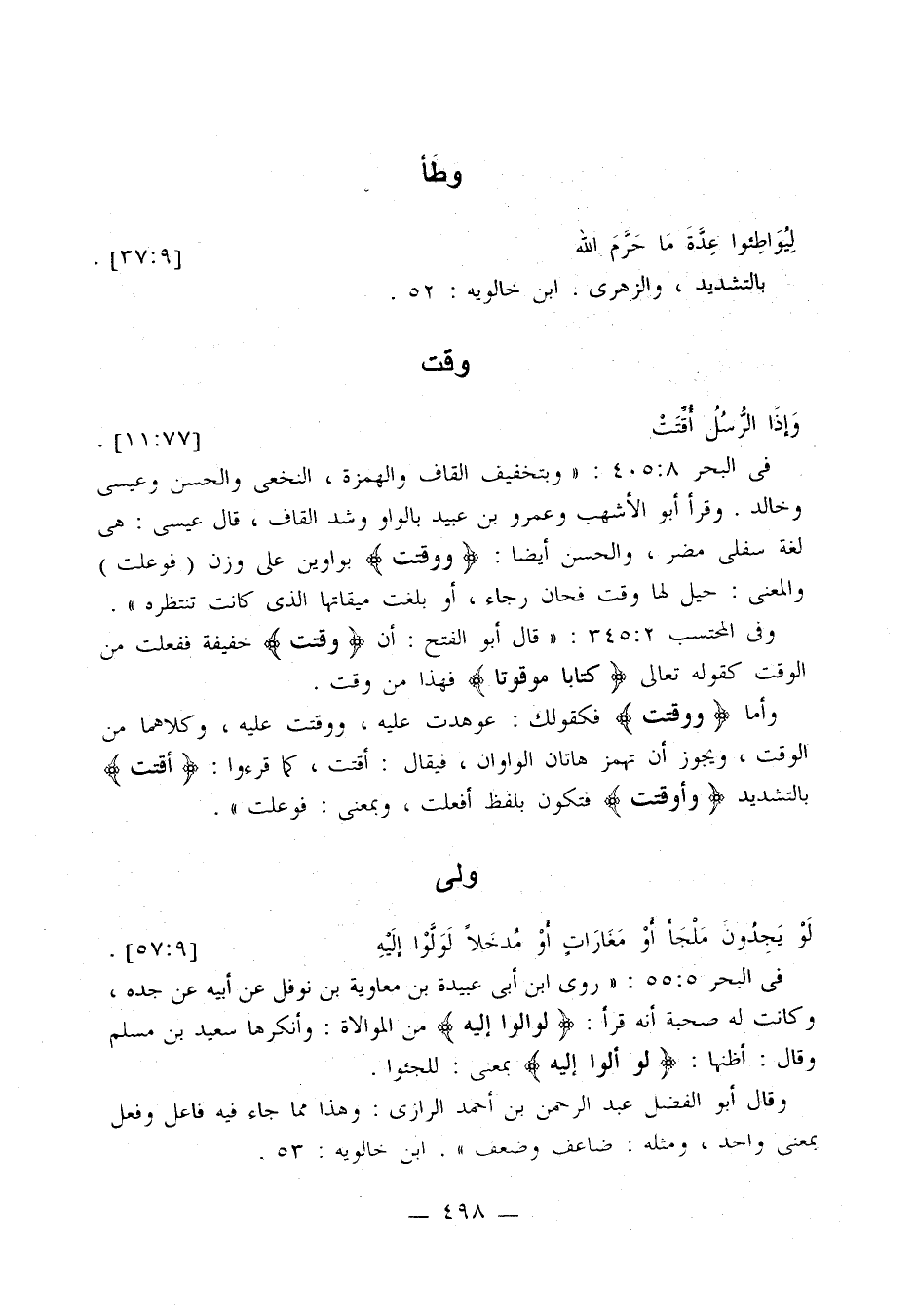 وفي المحتسب 2: 345: «قال أبو الفتح: أن {وقتت} خفيفة ففعلت من الوقت كقوله تعالى {كتابا موقوتا} فهذا من وقت.