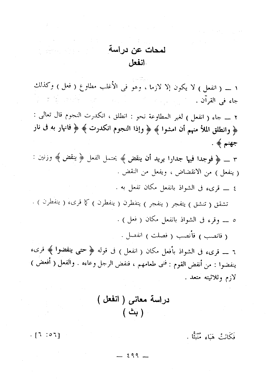 2 - جاء (انفعل) لغير المطاوعة نحو: انطلق، انكدرت النجوم قال تعالى: {وانطلق الملأ منهم أن امشوا} {وإذا النجوم انكدرت} {فانهار به في نار جهنم}.