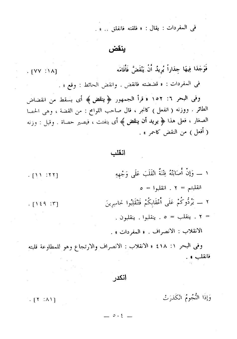 وفي البحر 1: 418: «الانقلاب: الانصراف والارتجاع وهو للمطاوعة قلبته فانقلب».