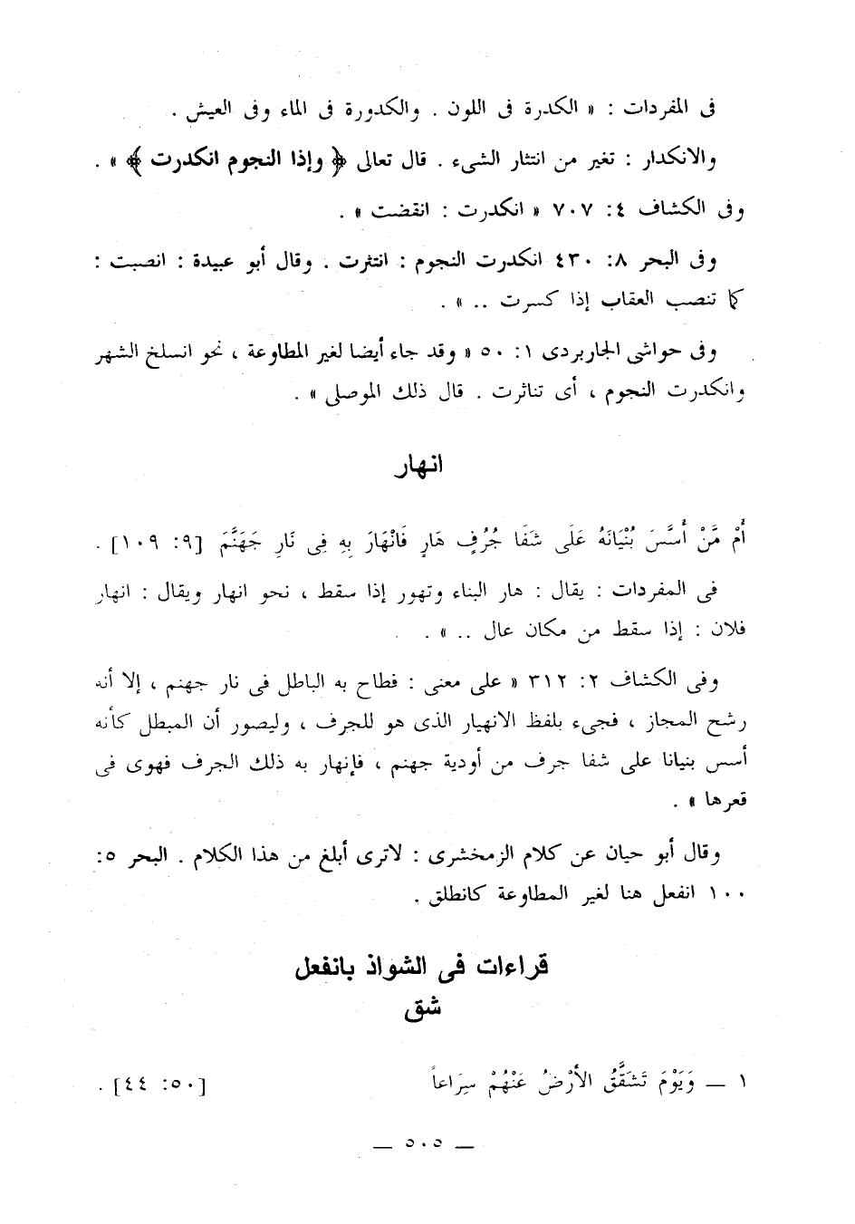 وفي الكشاف 4: 707: «انكدرت: انقضت».