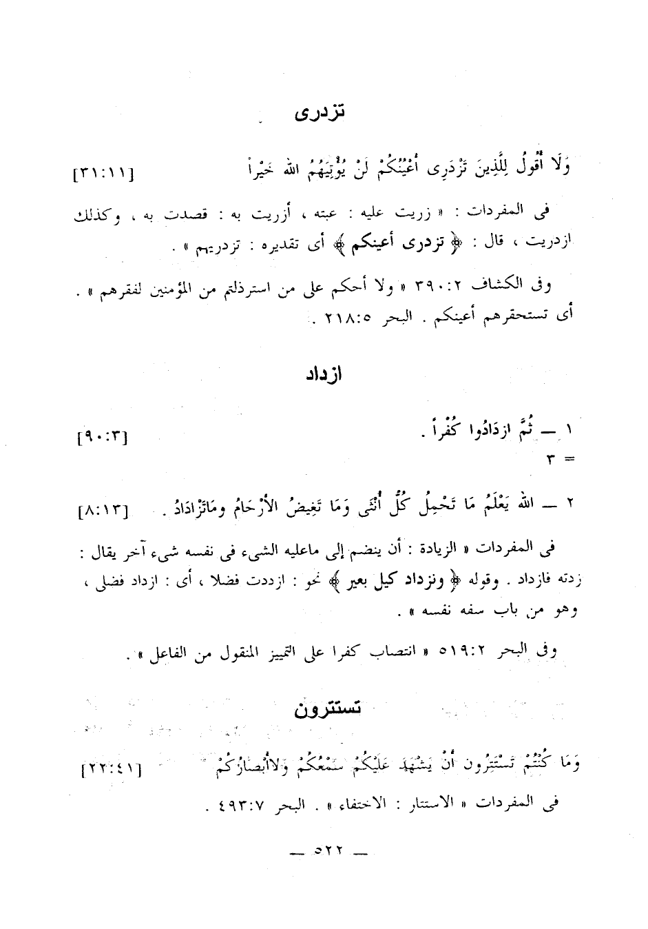 في المفردات «الاستتار: الاختفاء». البحر 7: 493.