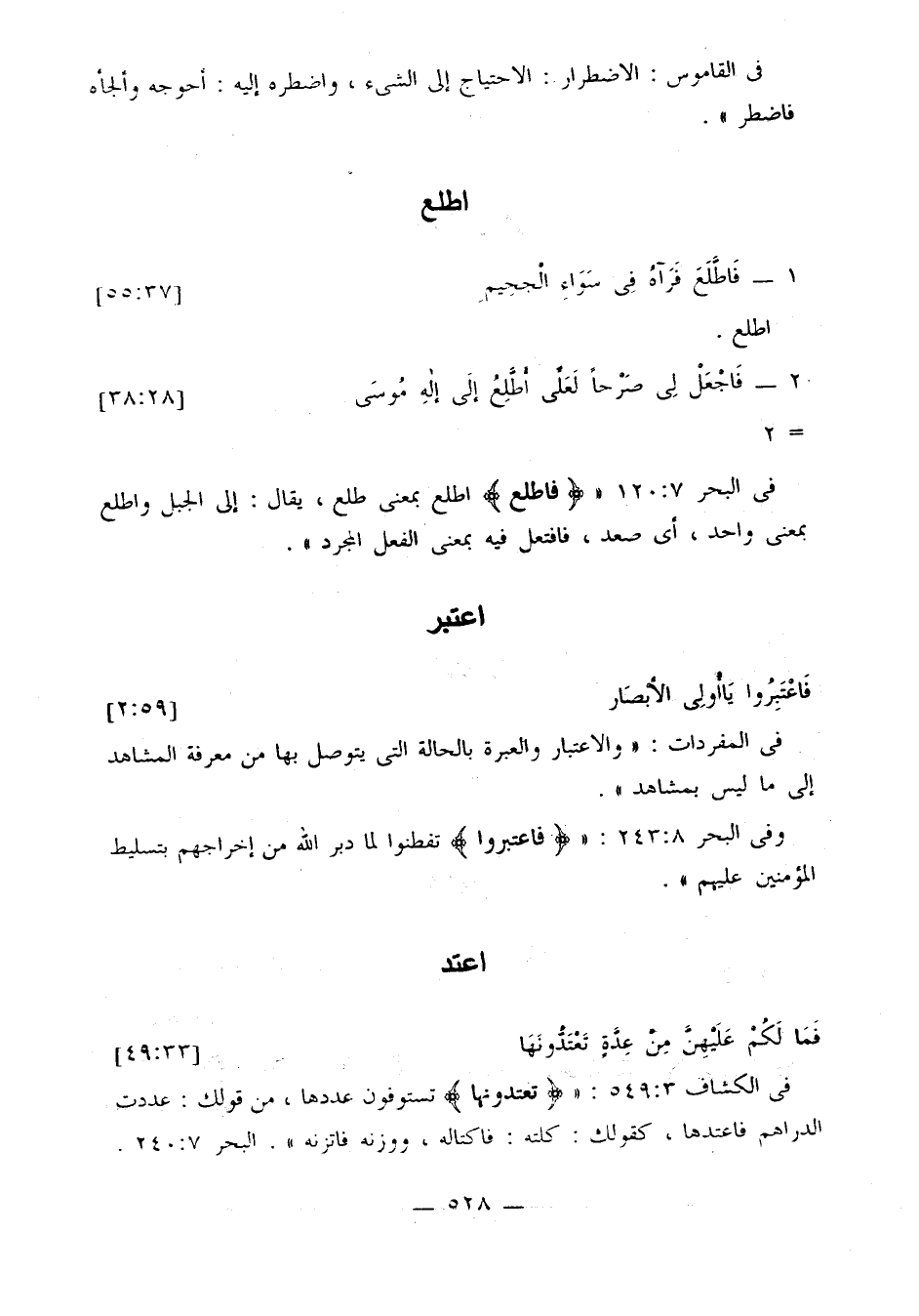 في البحر 7: 120: «{فاطلع} اطلع بمعنى طلع، يقال: إلى الجبل واطلع بمعنى واحد، أي صعد، فافتعل فيه بمعنى الفعل المجرد».