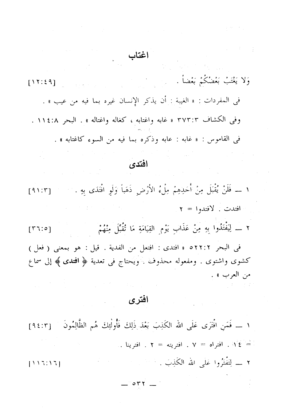 في البحر 2: 522: «افتدى: افتعل من الفدية. قيل: هو بمعنى (فعل) كشوى واشتوى. ومفعوله محذوف. ويحتاج في تعدية {افتدى} إلى سماع من العرب».