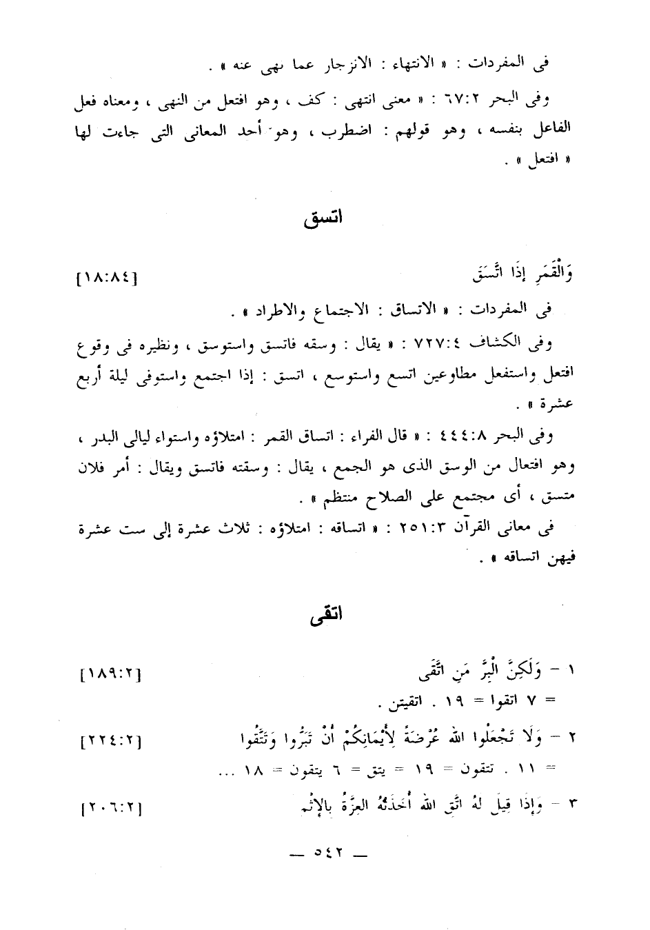 وفي الكشاف 4: 727: «يقال: وسقه فاتسق واستوسق، ونظيره في وقوع افتعل واستفعل مطاوعين اتسع واستوسع، اتسق: إذا اجتمع واستوفى ليلة أربع عشرة».