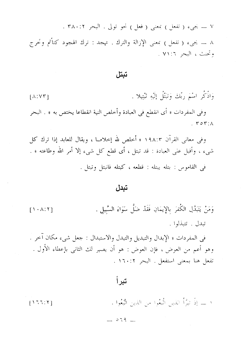 وفي المفردات: «أي انقطع في العبادة وأخلص النية انقطاعا يختص به». البحر 8: 353.