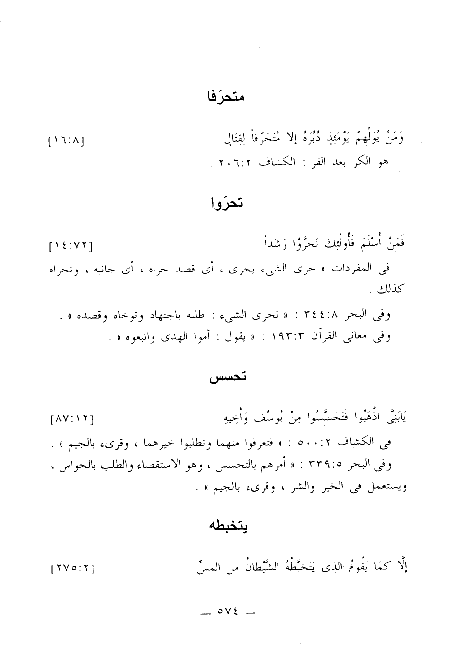 وف يالبحر 8: 344: تحرى الشيء: طلبه باجتهاد وتوخاه وقصده».