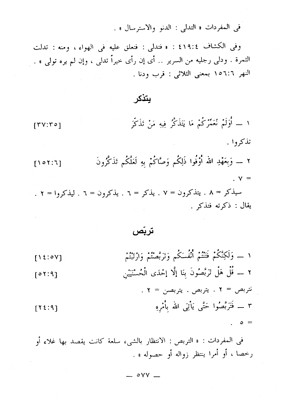 وفي الكشاف 4: 419: «فتدلى: فتعلق عليه في الهواء، ومنه: تدلت الثمرة. ودلى رجليه من السرير ... أي إن رأى خيرًا تدلى، وإن لم يره تولى». النهر 6: 156 بمعنى الثلاثي: قرب ودنا.