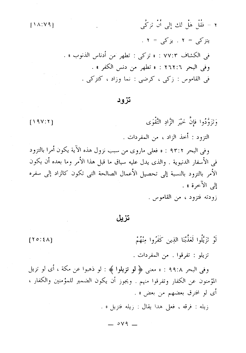 وفي البحر 2: 93: «فعلى ما روى من سبب نزول هذه الآية يكون أمرا بالتزود في الأسفار الدنيوية. والذي يدل عليه سياق ما قبل هذا الأمر وما بعده أن يكون الأمر بالتزود بالنسبة إلى تحصيل الأعمال الصالحة التي تكون كالزاد إلى سفره إلى الآخرة». زودته فتزود، من القاموس.