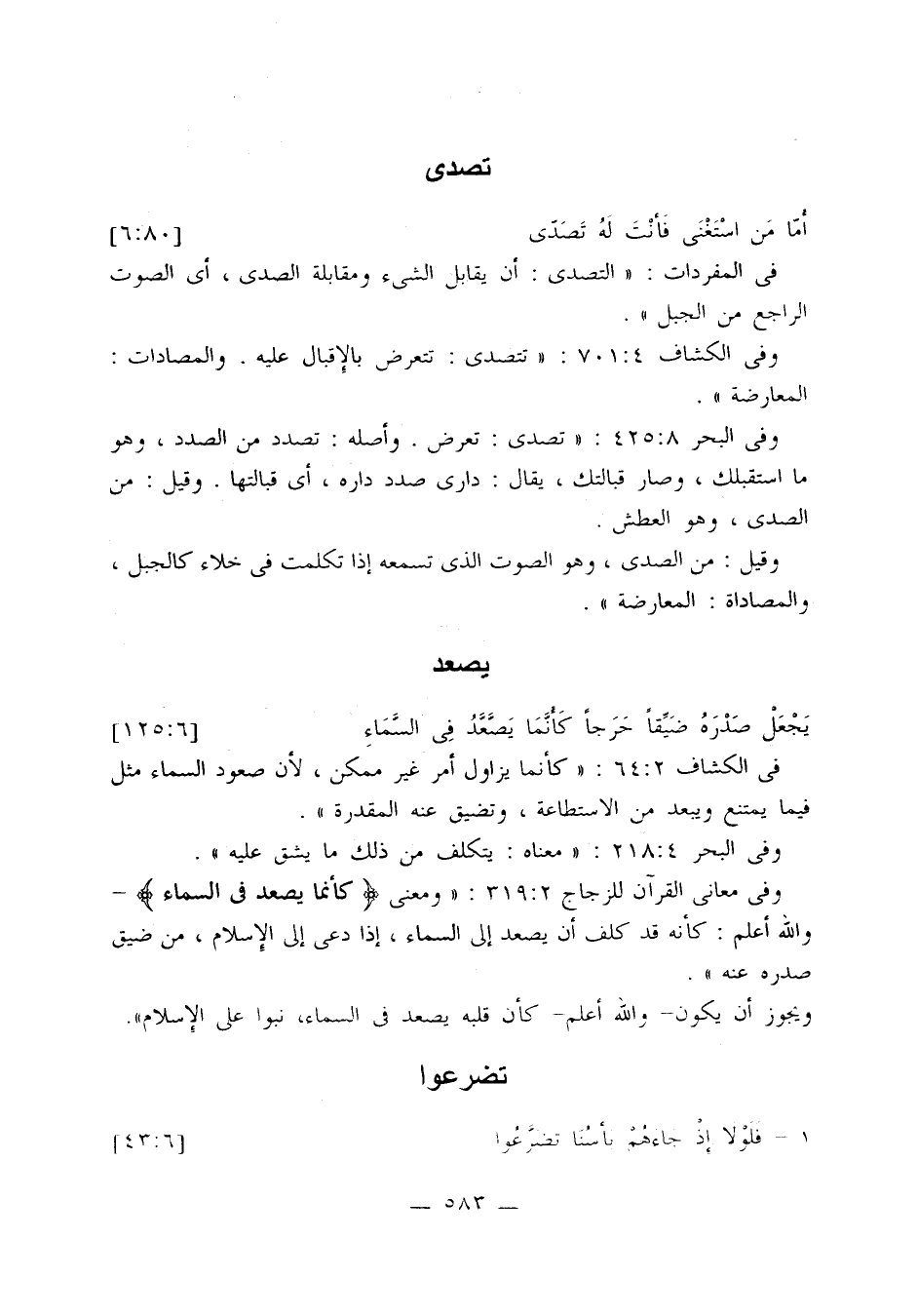 وفي الكشاف 4: 701: «تتصدى: تتعرض بالإقبال عليه. والمصادات: المعارضة».