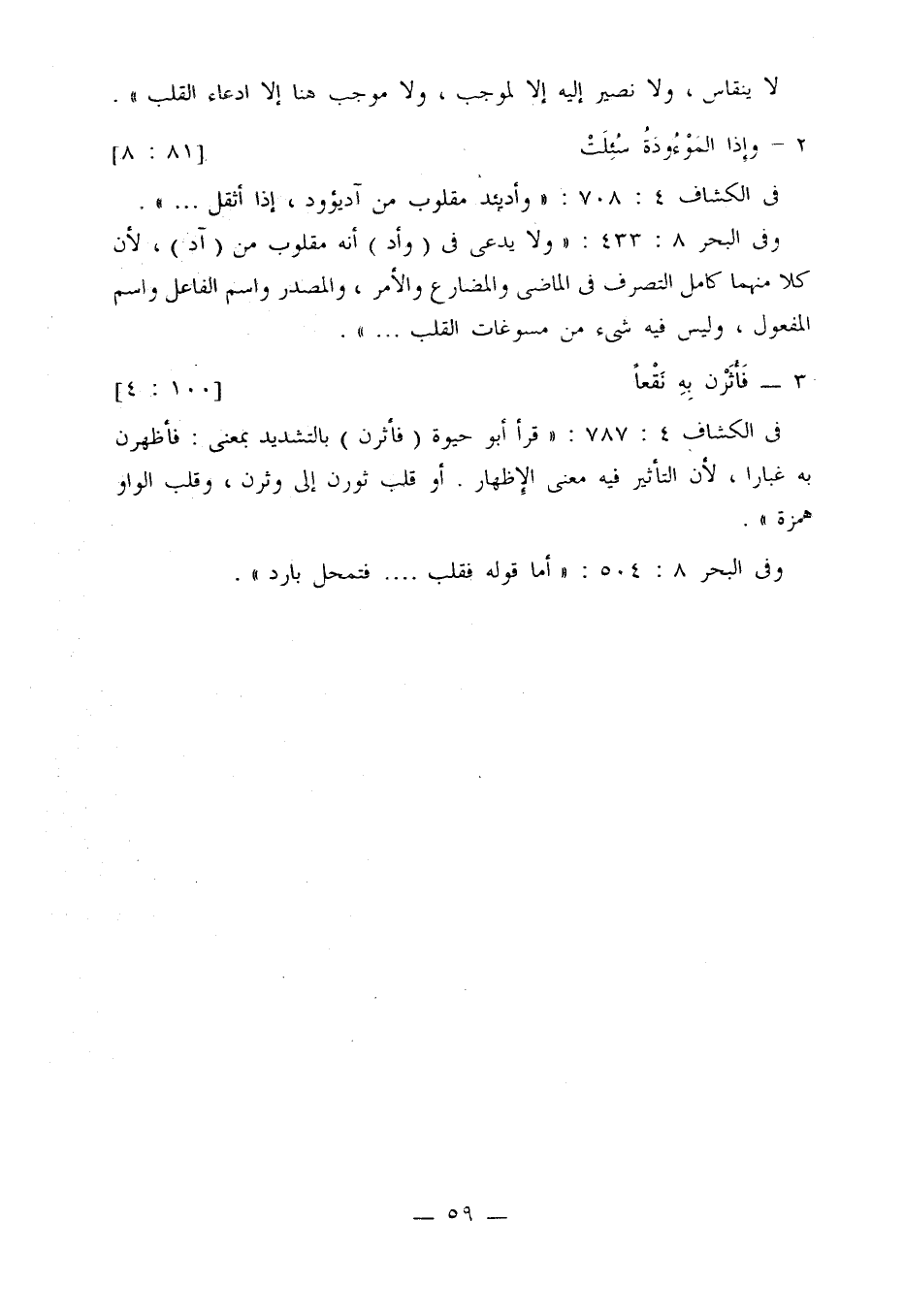 في الكشاف 4: 787: «قرأ أبو حيوة (فأثرن) بالتشديد بمعنى: فأظهرن به غبارا، لأن التأثير فيه معنى الإظهار. أو قلب ثورن إلى وثرن، وقلب الواو همزة».