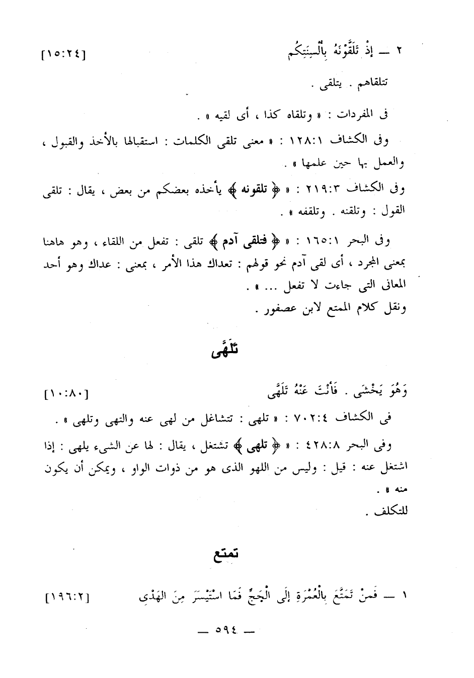 وفي الكشاف 1: 128: «معنى تلقى الكلمات: استقبالها بالأخذ والقبول، والعمل بها حين علمها».