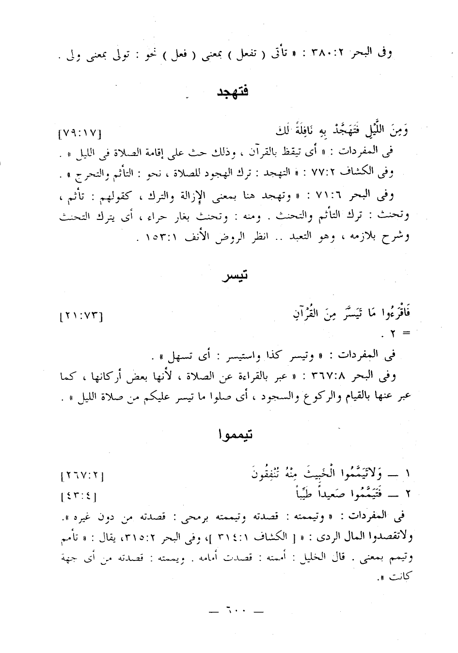 ولا تقصدوا المال الرديء: «[الكشاف: 1: 314]، وفي البحر 2: 315، يقال: تأمم وتيمم بمعنى. قال الخليل: أممته: قصدت أمامه. ويممته: قصدته من أي جهة كانت».