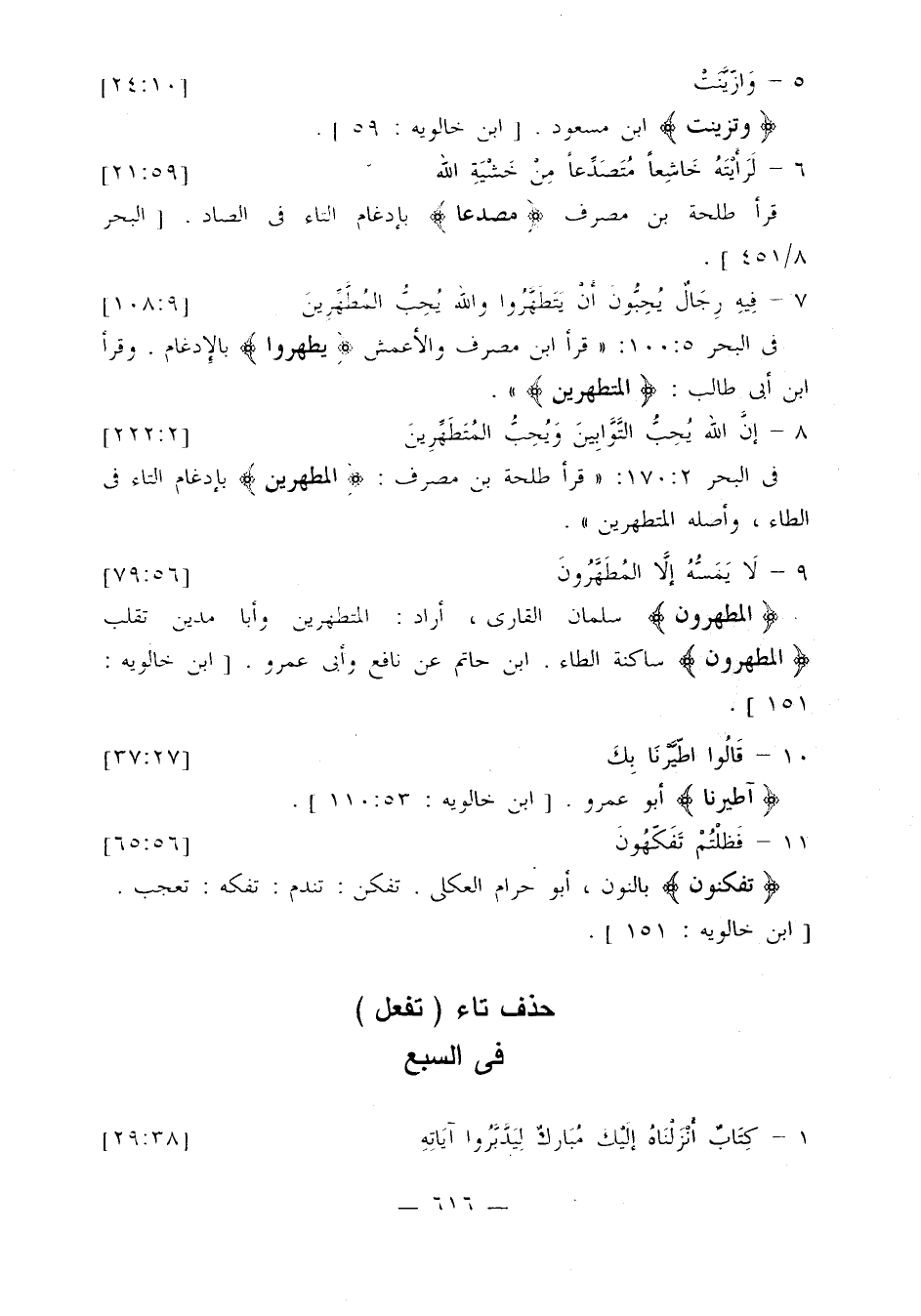 في البحر 2: 170: «قرأ طلحة بن مصرف: {المطهرين} بإدغام التاء في الطاء، وأصله المتطهرين».