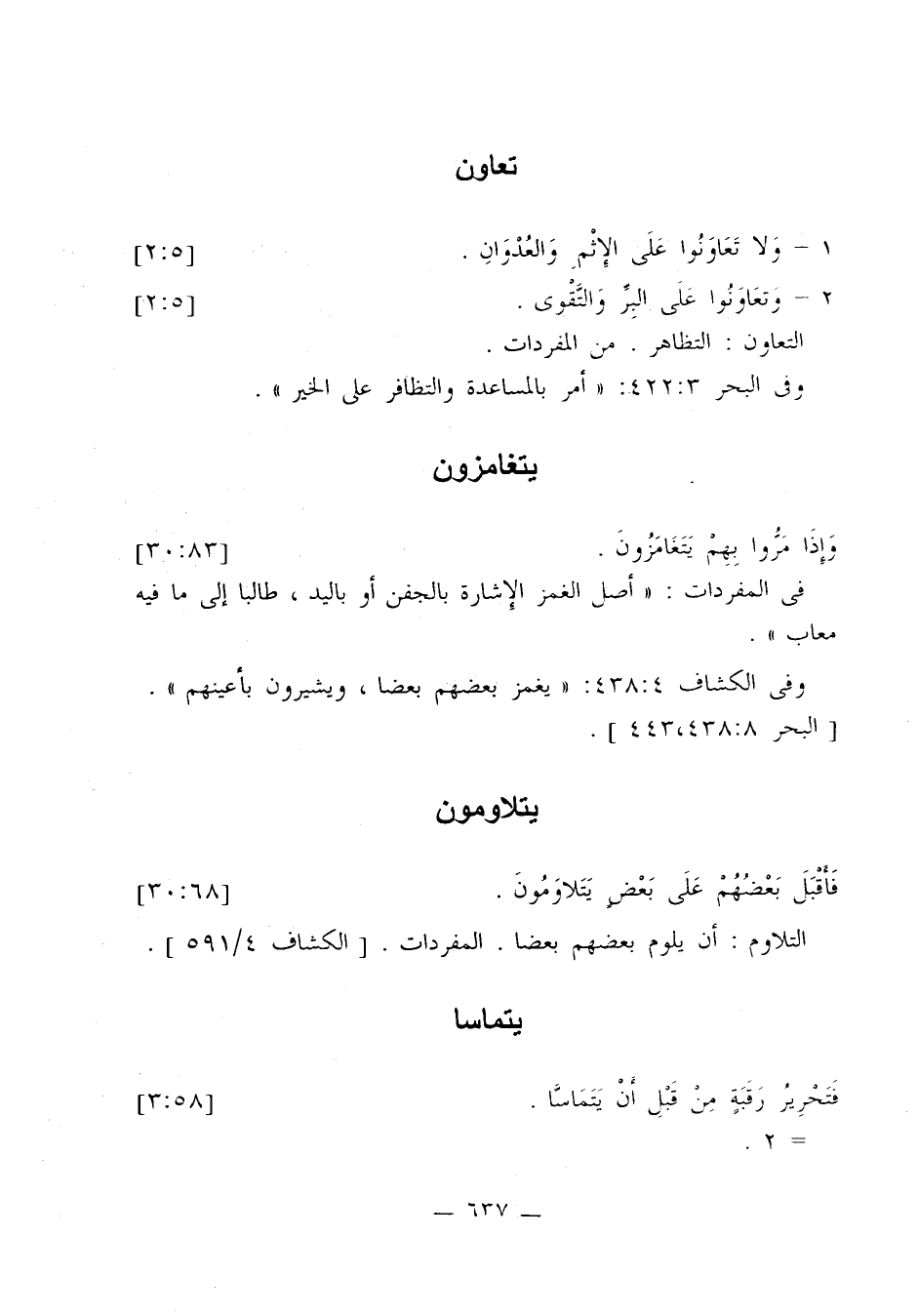 1 - ولا تعاونوا على الإثم والعدوان ... [5: 2].