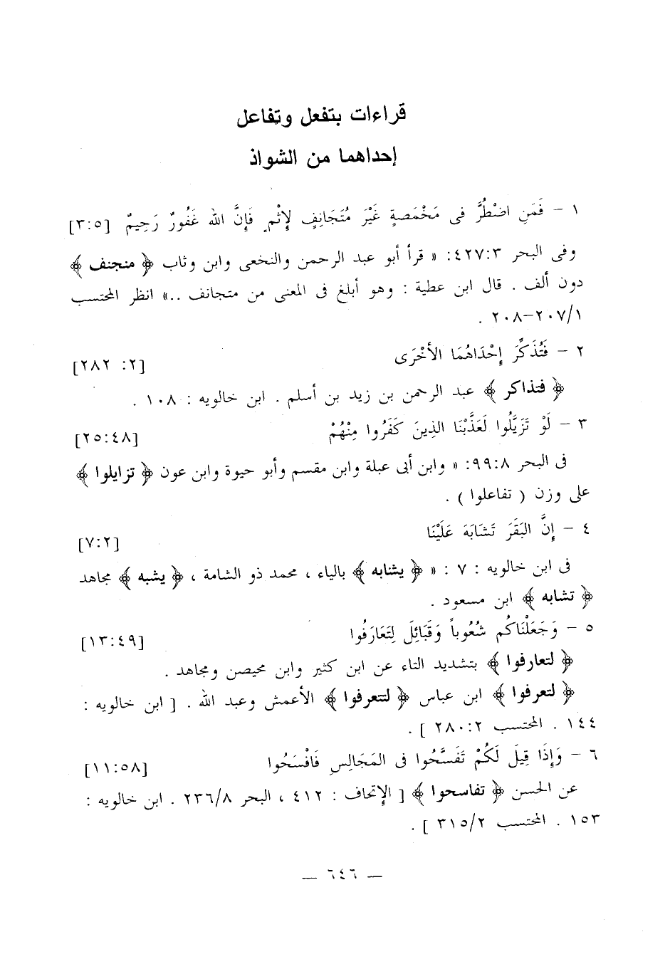 في ابن خالويه: 7: «{يثنابه} بالياء، محمد ذو الشامة، {يشبه} مجاهد {تشابه} ابن مسعود».