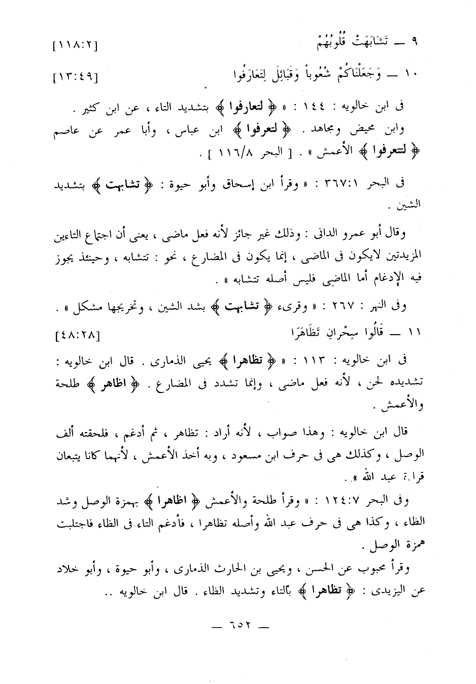 في ابن خالويه: 144: «{لتعارفوا} بتشديد التاء، عن ابن كثير.