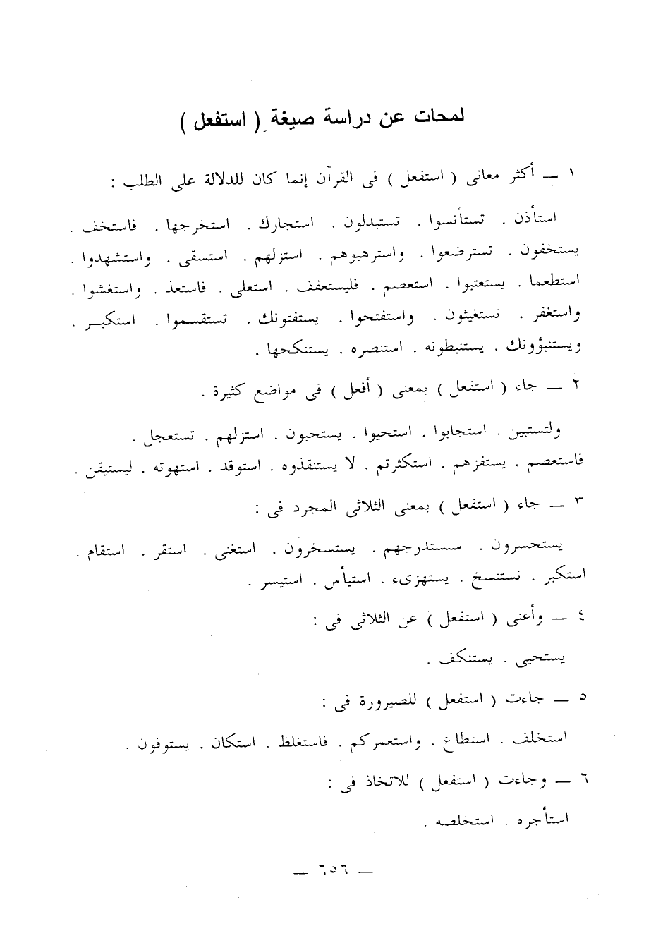 ولتستبين. استجابوا. استحيوا. يستحبون. استزلهم. تستعجل. فاستعصم. يستفزهم. استكثرتم. لا يستنقذوه. استوقد. استهوته. ليستيقن.