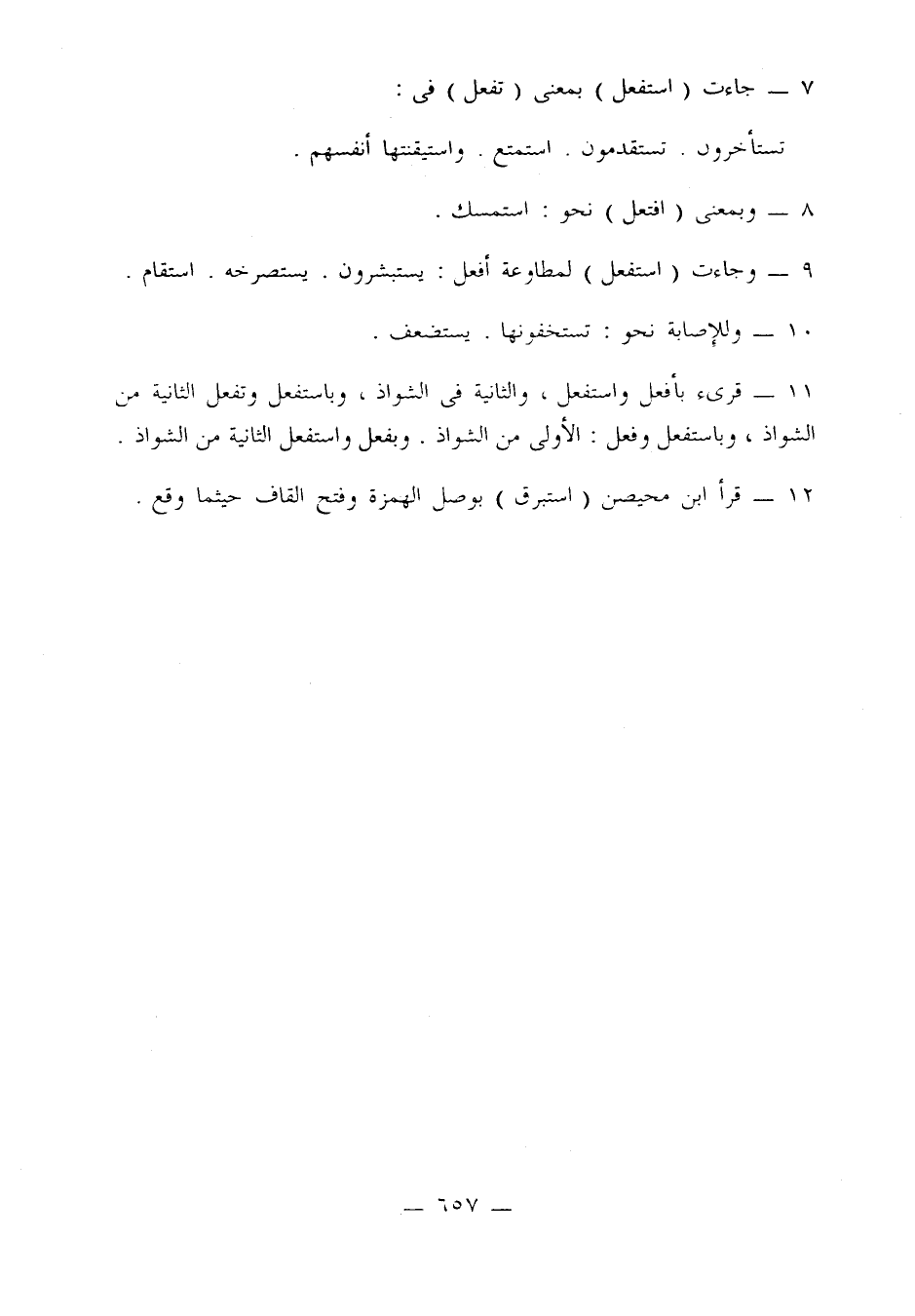11 - قرئ بأفعل واستفعل، والثانية في الشواذ، وباستفعل وتفعل الثانية من الشواذ، وباستفعل وفعل: الأولى من الشواذ. وبفعل واستفعل الثانية من الشواذ.