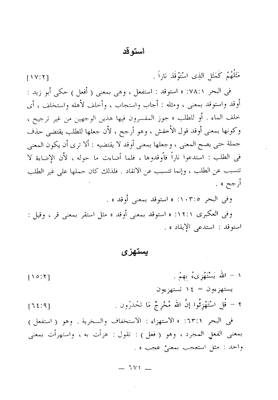 وفي العكبري 1: 12: «استوقد بمعنى أوقد» مثل استقر بمعنى قر، وقيل: استوقد: استدعى الإيقاد.