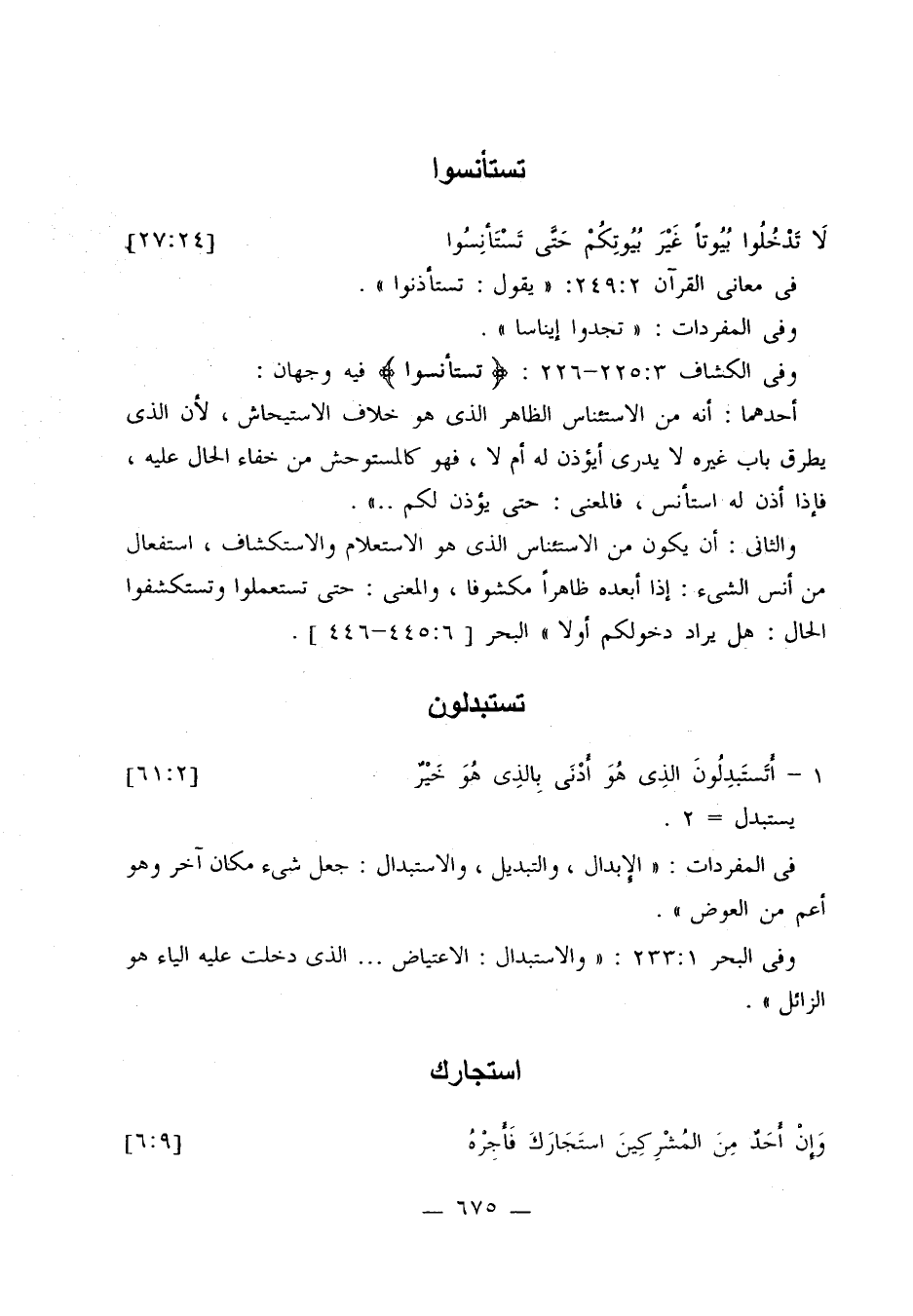 والثاني: أن يكون من الاستئناس الذي هو الاستعلام والاستكشاف، استفعال من أنس الشيء: إذا أبعده ظاهرا مكشوفا، والمعنى: حتى تستعملوا وتستكشفوا الحال: هل يراد دخولكم أولا. البحر 6: 445 - 446.