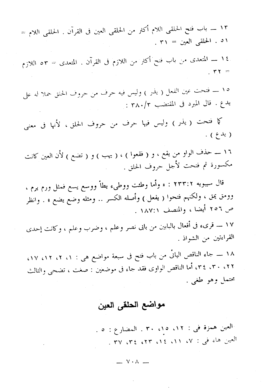 13 - باب فتح الحلقي اللام أكثر من الحلقي العين في القرآن. الحلقي اللام = 51. الحلقي العين = 31.
