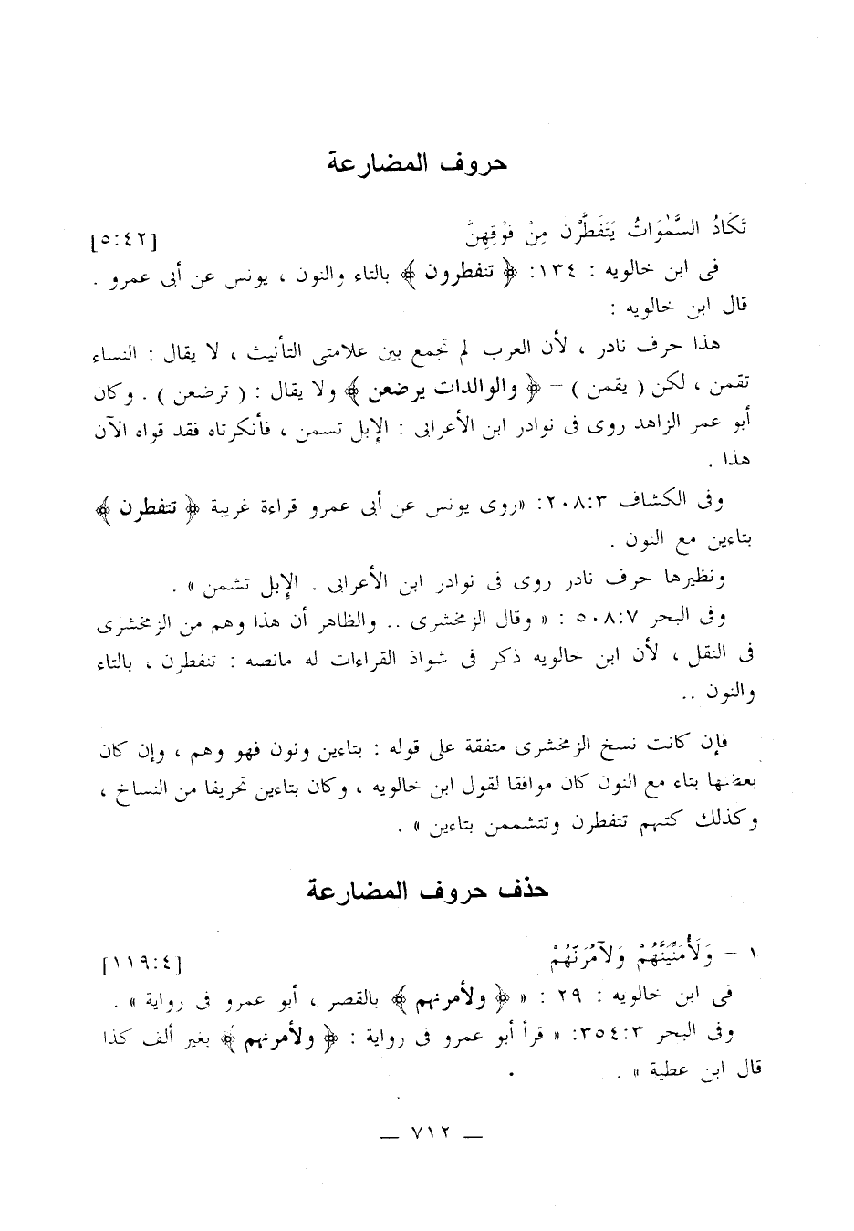 وفي الكشاف 3: 208: «روى يونس عن أبي عمرو قراءة غريبة {تتفطرن} بتاءين مع النون.
