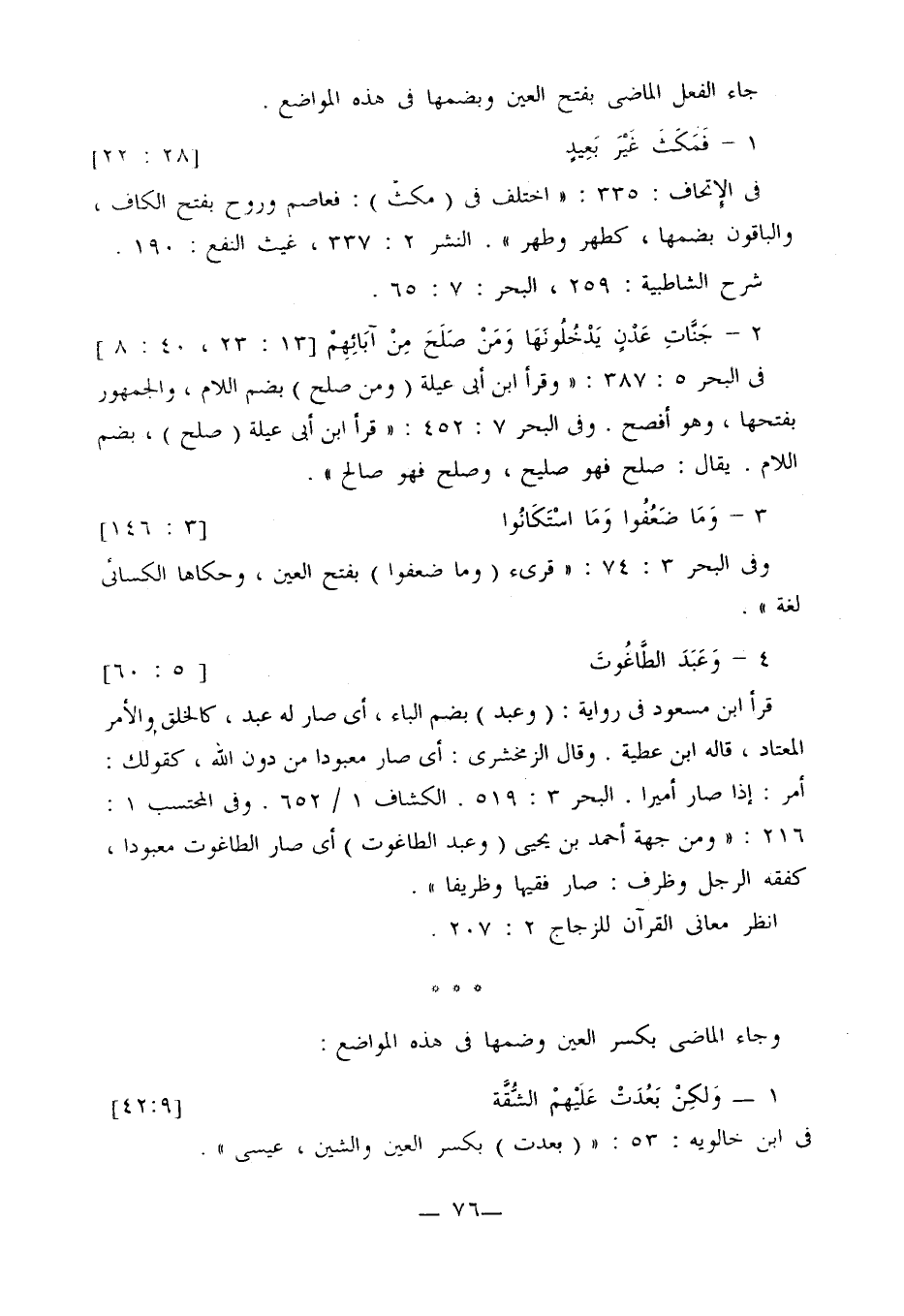 في الإتحاف: 335: «اختلف في (مكث): فعاصم وروح بفتح الكاف، والباقون بضمها، كطهر وطهر». النشر 2: 337، غيث النفع: 190. شرح الشاطبية: 259، البحر 7: 65.