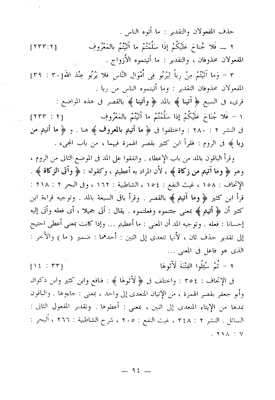 في النشر 2: 280: واختلفوا في {ما أتيتم بالمعروف} هنا. و {ما أتيتم من ربا} في الروم: فقرأ ابن كثير بقصر الهمزة فيهما، من باب المجيء.