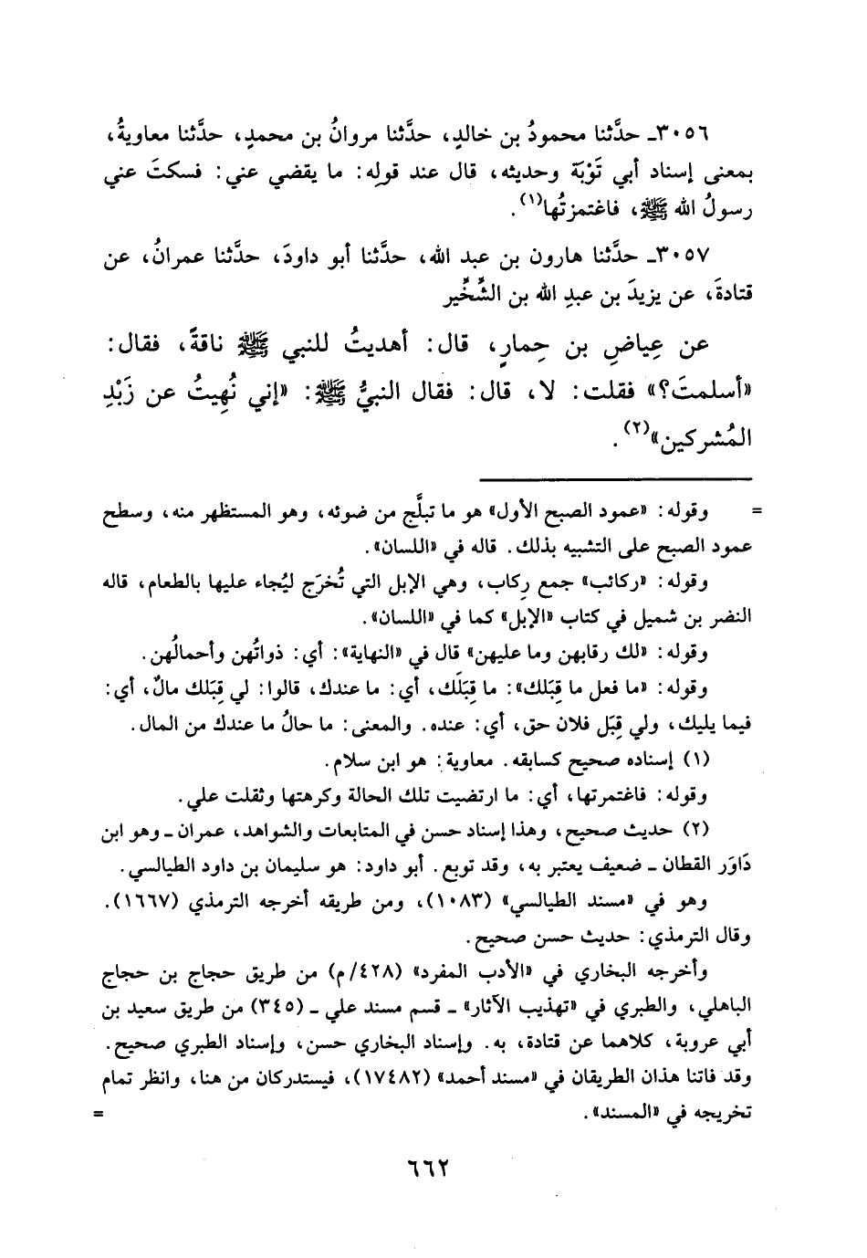 ٣٠٥٧ - حدَّثنا هارون بن عبد الله، حدَّثنا أبو داودَ، حدَّثنا عمرانُ، عن قتادةَ، عن يزيدَ بن عبدِ الله بن الشِّخِّير