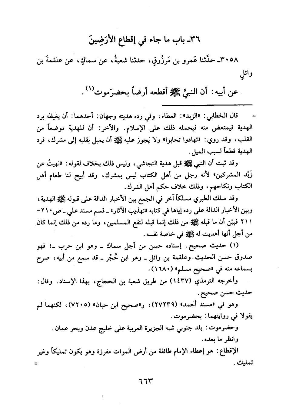 ٣٦ - باب ما جاء في إقطاع الأرَضِينَ