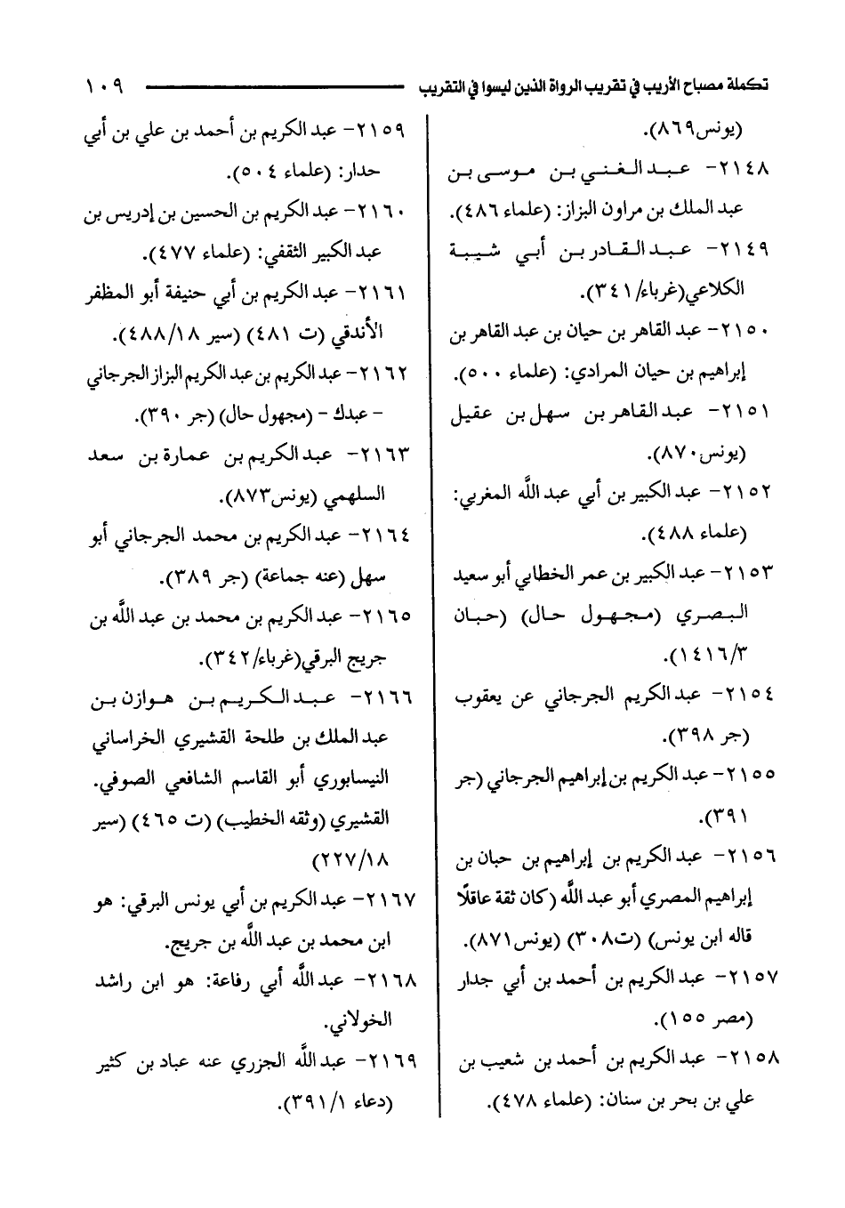 2156 - عبد الكريم بن إبراهيم بن حبان بن إبراهيم المصري أبو عبد الله (كان ثقة عاقلًا قاله ابن يونس) (ت 308) (يونس 871).