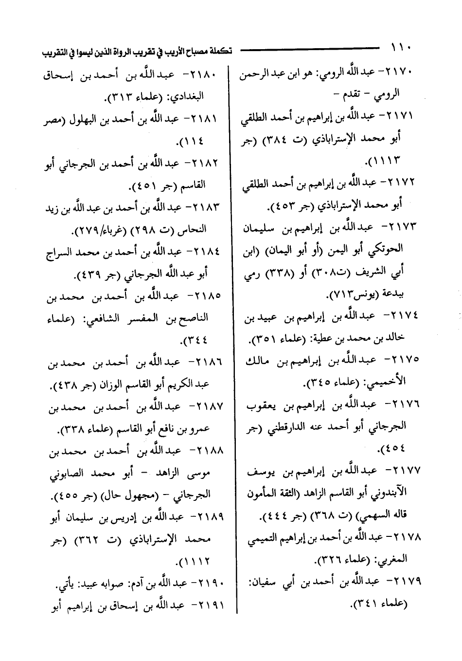 2171 - عبد الله بن إبراهيم بن أحمد الطلقي أبو محمد الإستراباذي (ت 384) (جر 1113).