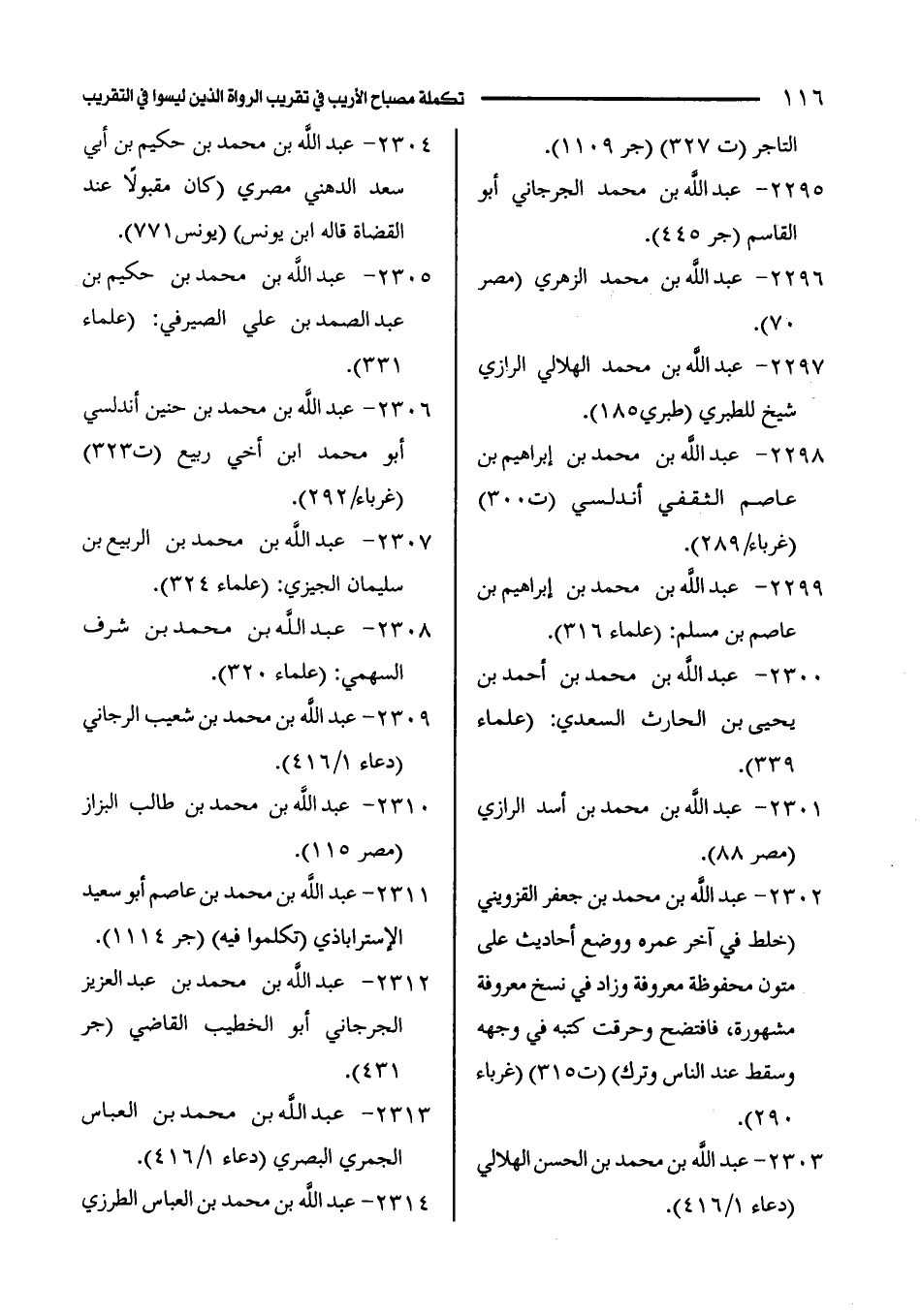 2303 - عبد الله بن محمد بن الحسن الهلالي (دعاء 1/ 416).