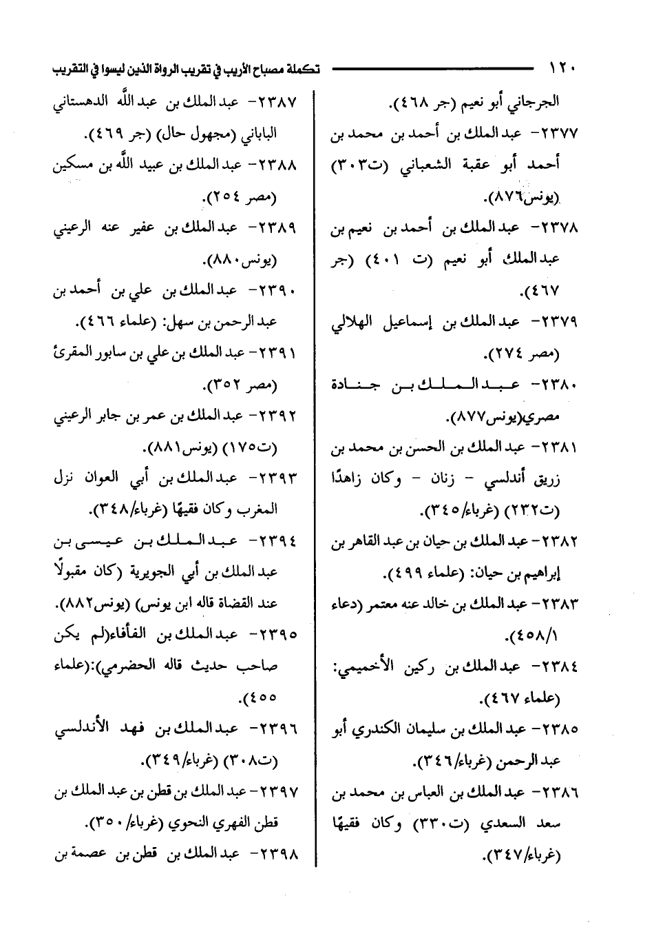 كتاب مصباح الأريب في تقريب الرواة الذين ليسوا في تقريب التهذيب (اسم الجزء: 4)