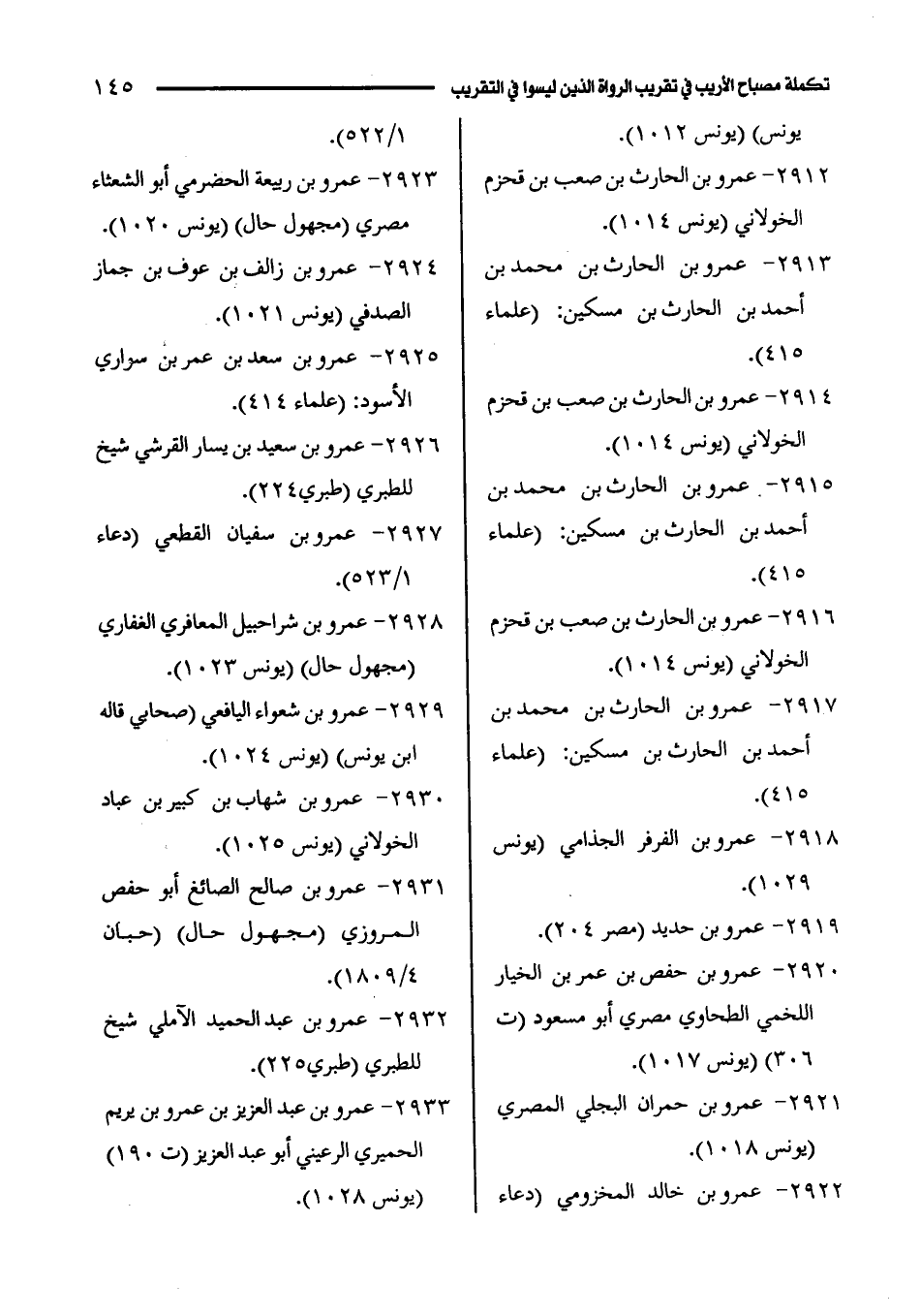 2933 - عمرو بن عبد العزيز بن عمرو بن يريم الحميري الرعيني أبو عبد العزيز (ت 190) (يونس 1028).