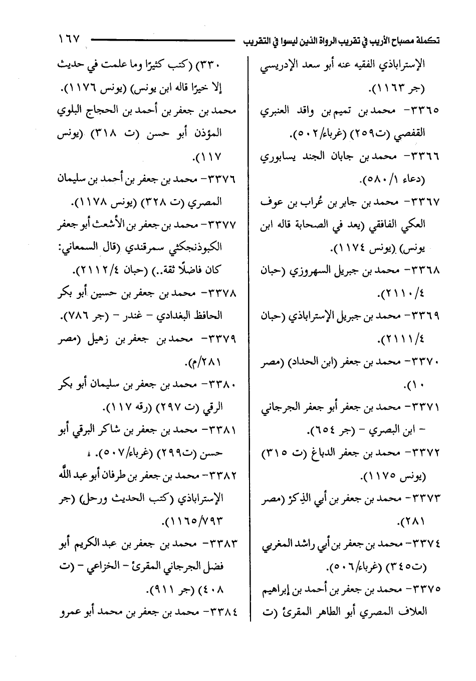 3376 - محمد بن جعفر بن أحمد بن سليمان المصري (ت 328) (يونس 1178).