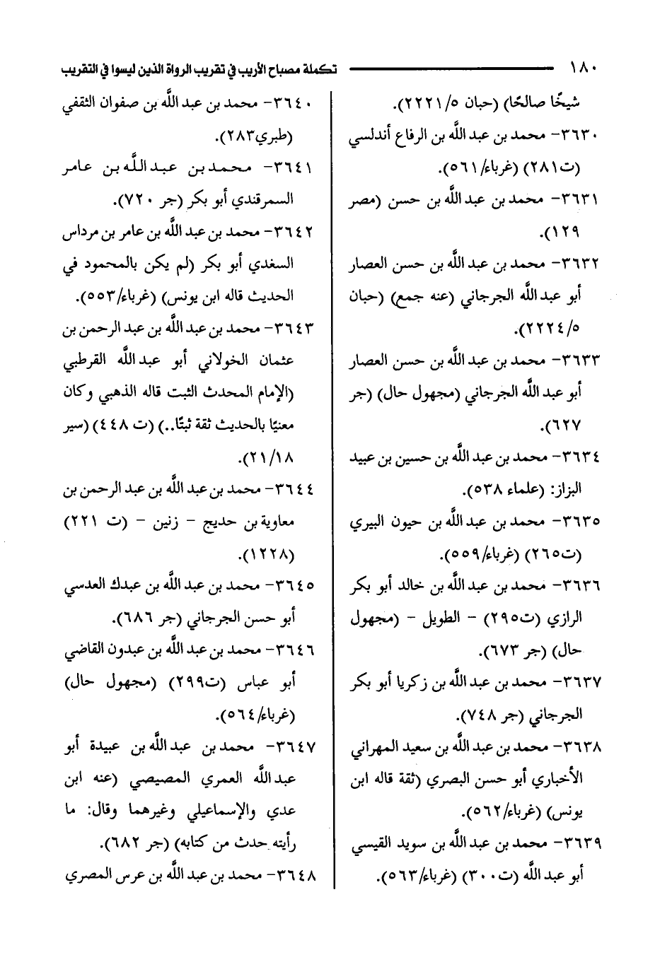 3643 - محمد بن عبد الله بن عبد الرحمن بن عثمان الخولاني أبو عبد الله القرطبي (الإمام المحدث الثبت قاله الذهبي وكان معنيًا بالحديث ثقة ثبتًا ..) (ت 448) (سير 18/ 21).